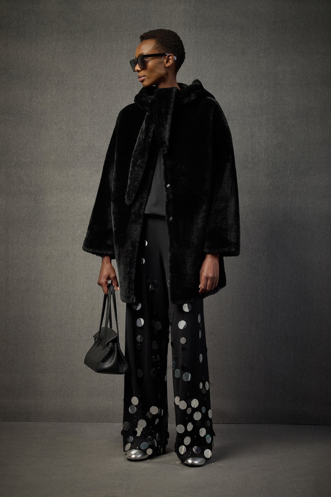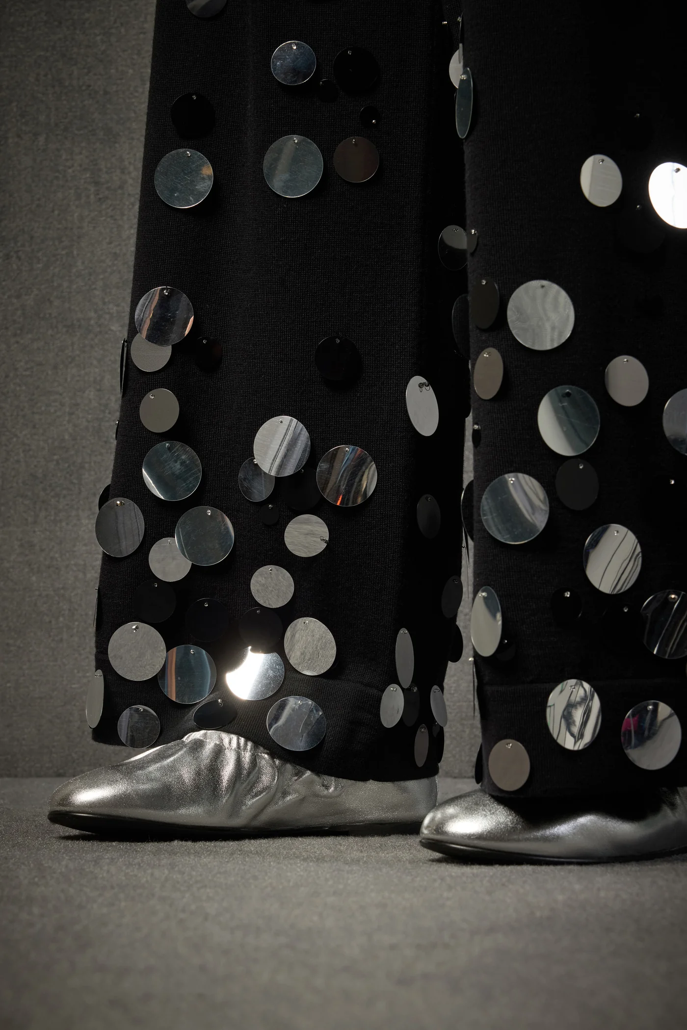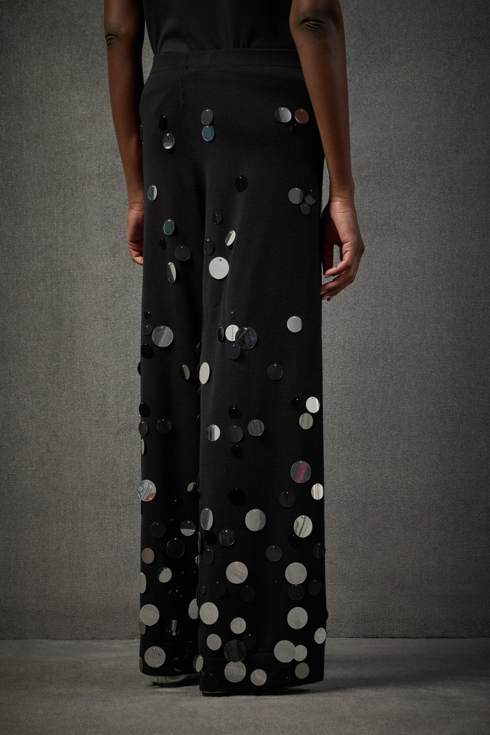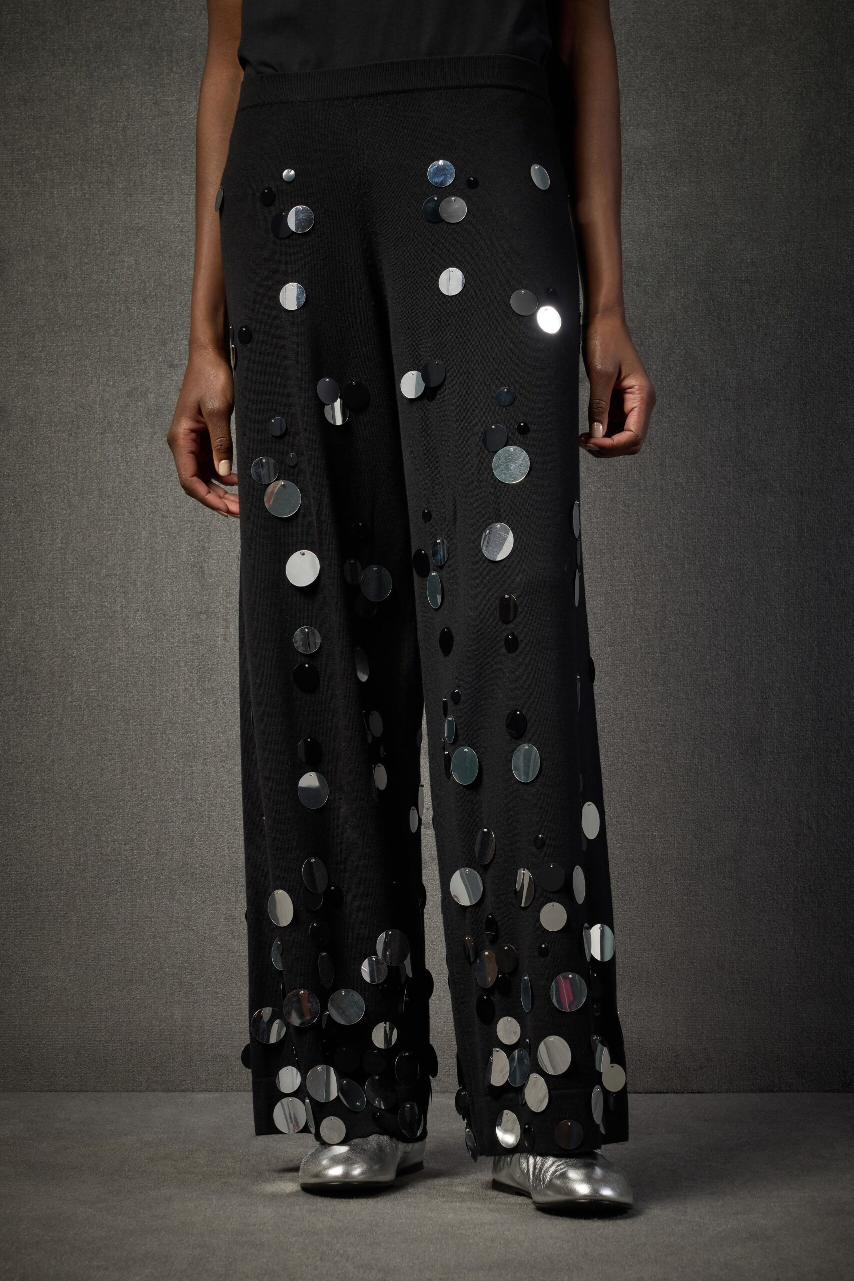 These wide, long trousers in extra-fine merino wool feature shiny sequins in various sizes and elasticated waist. Add some sparkle to your every day looks or pull them out for party season!