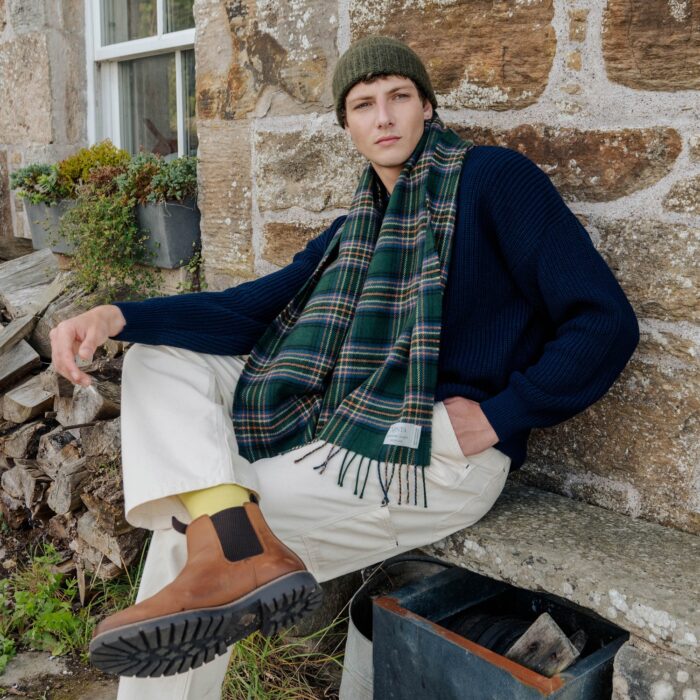 100% Lambswool – luxuriously soft, naturally warm and comfortable, inspired by the River Dee’s banks during Autumn.