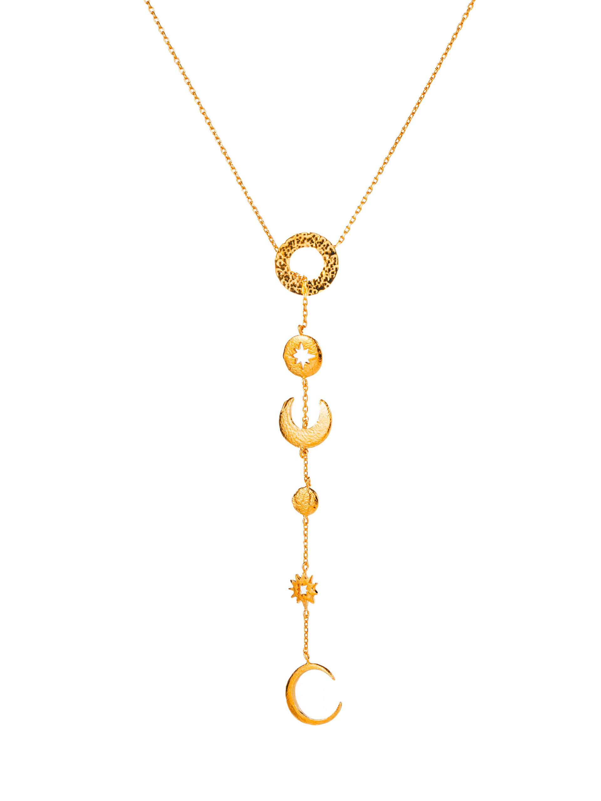 The Astros Necklace is a piece that connects you to the magic of the universe. Made from recycled 925 sterling silver and plated in 18Kt gold, this necklace is inspired by the beauty and mystery of the stars and celestial bodies—making it a unique piece that lights up your style with a cosmic touch.