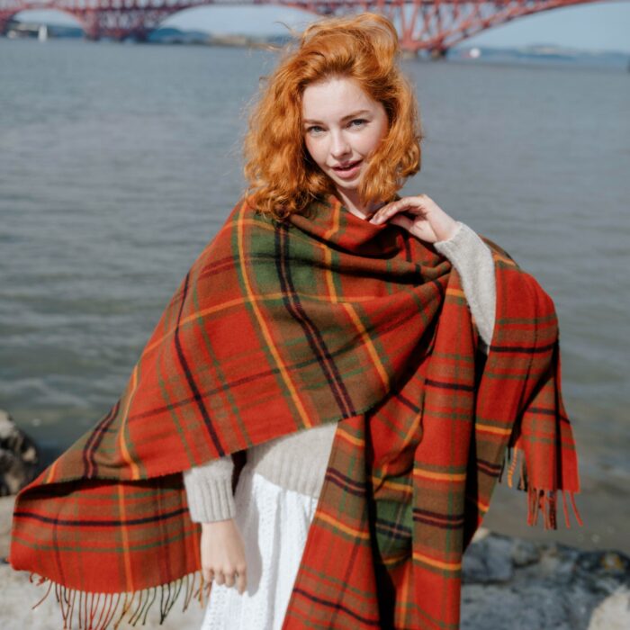 100% Lambswool – luxuriously soft, naturally warm and comfortable, inspired by Scotland’s Woodlands canopy of Autumn foliage