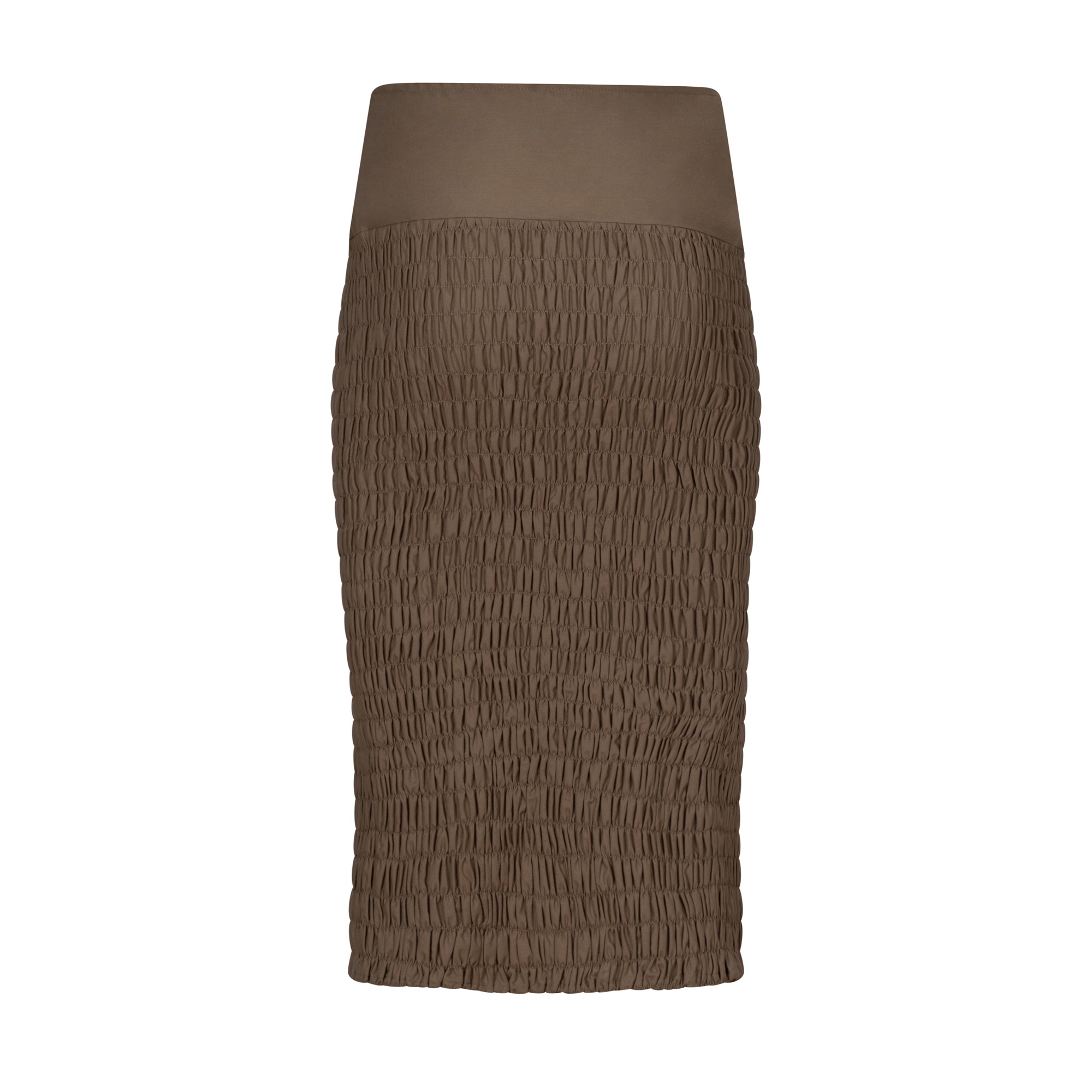 Elegant and versatile, this cotton crushed mid-length skirt is meticulously crafted with technical precision to ensure a flattering fit for every body shape. Designed with a body-hugging shirring technique, it molds effortlessly to your curves while providing comfort and freedom of movement.