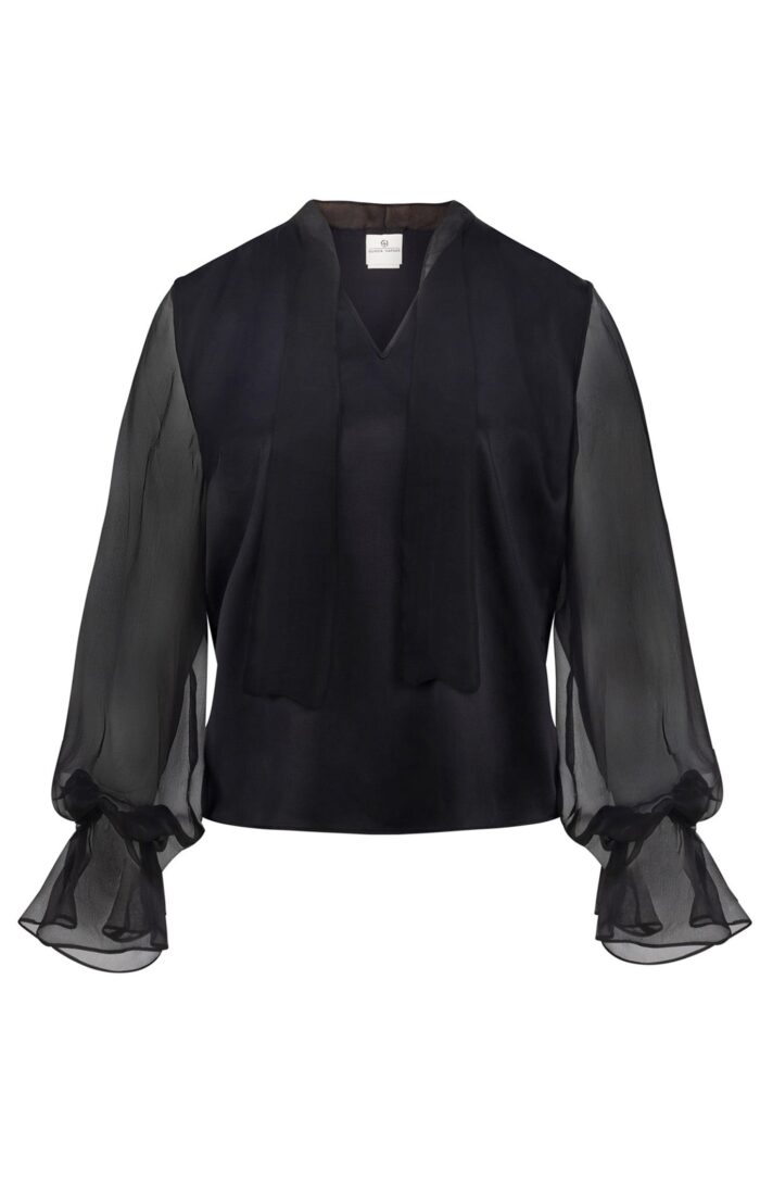 Black Silk Blouse With Sheer Sleeves