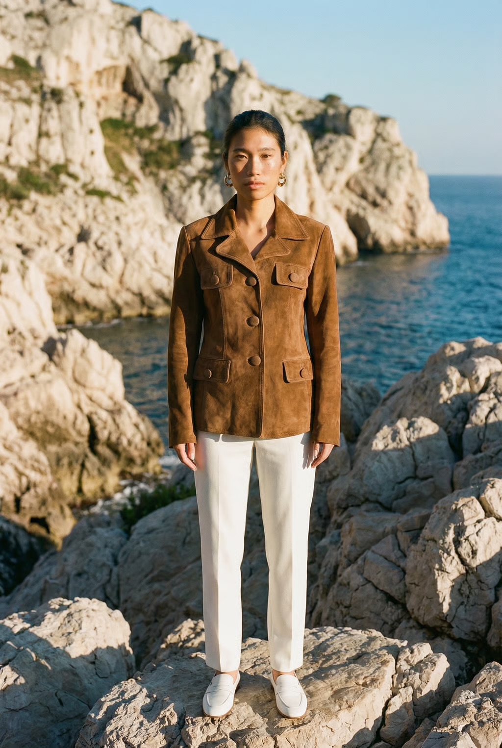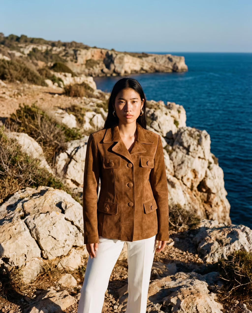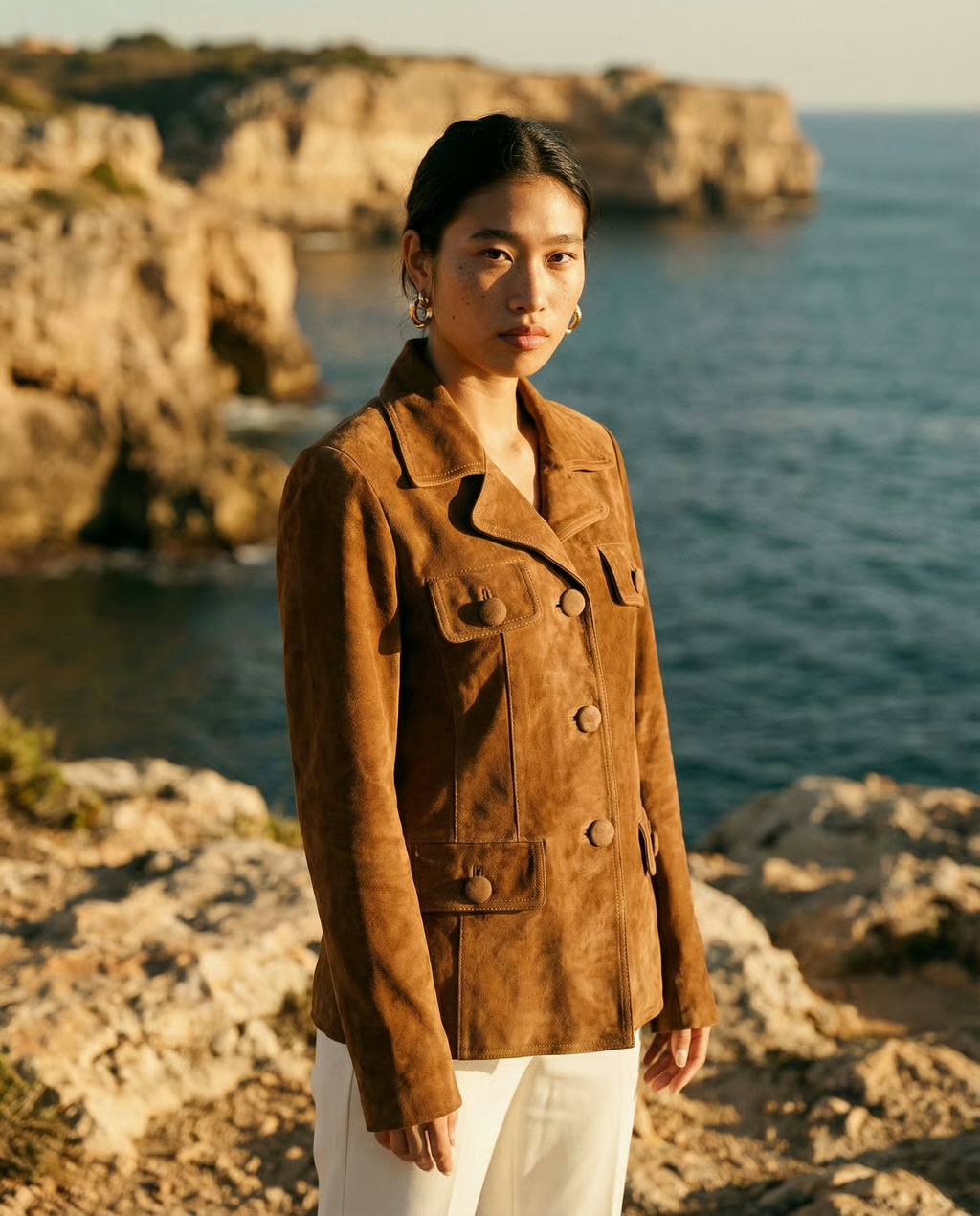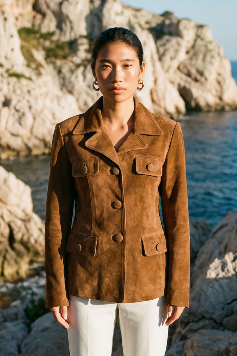 Blacky Blazer is crafted from ultra-soft suede in a rich chocolate-brown hue, defined by a clean, structured silhouette and refined button detailing. A timeless statement piece that elevates everyday dressing with effortless luxury.