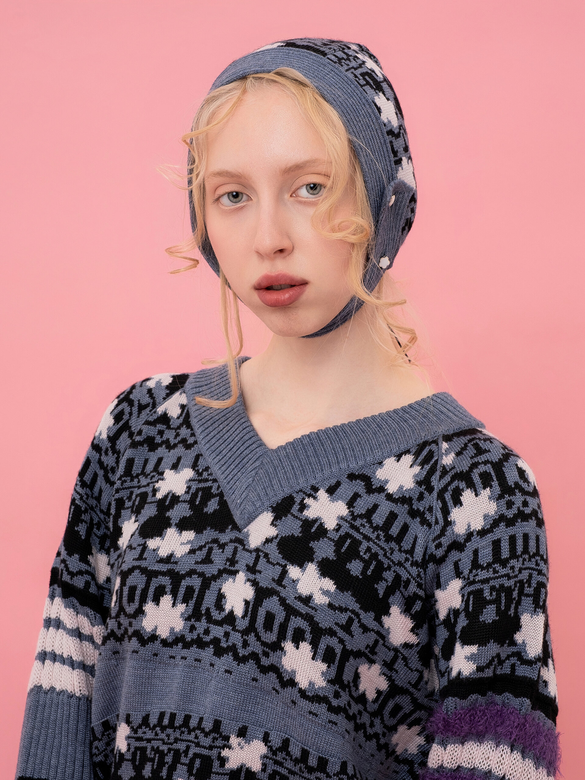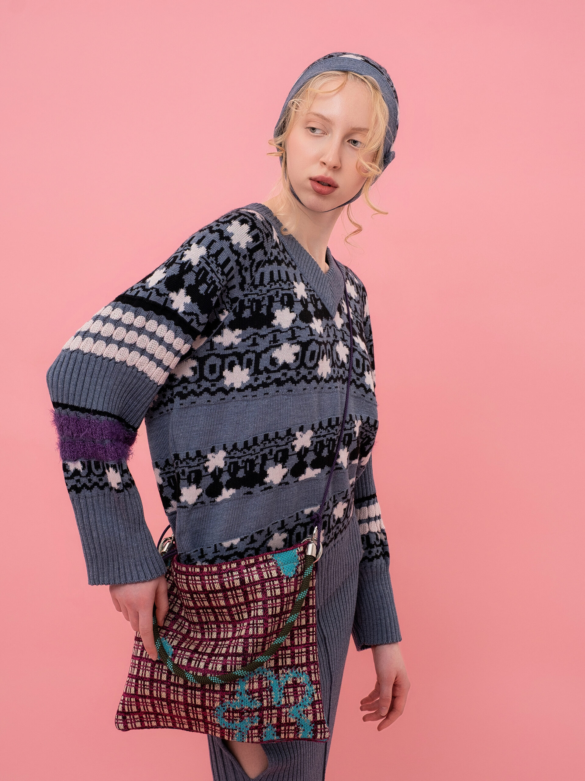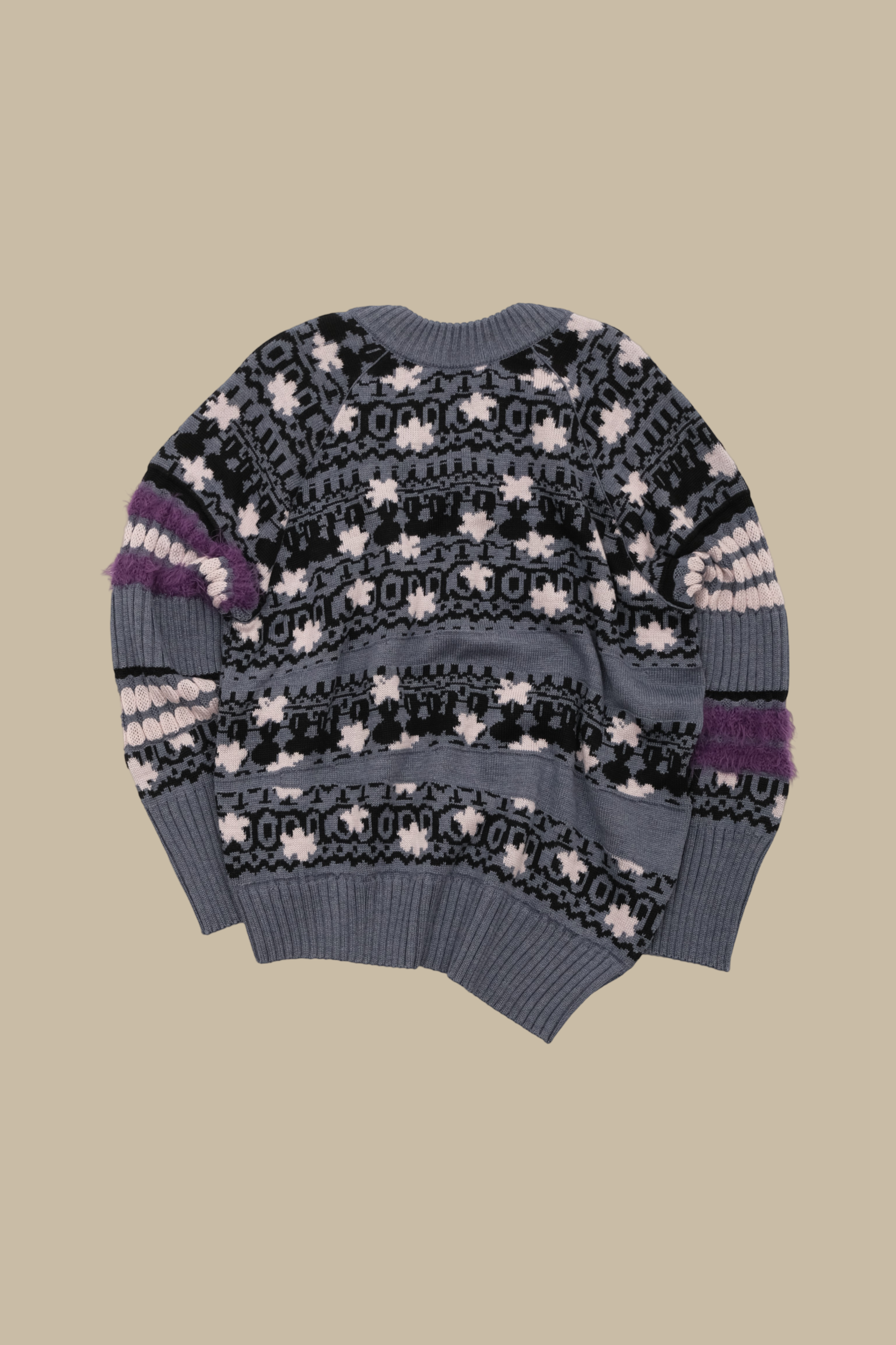 Jacquard sweater with mixed patterns, subtle vintage-inspired detailing and a relaxed, easy-to-style silhouette — a signature Loonyloop playful twist on classic knitwear.