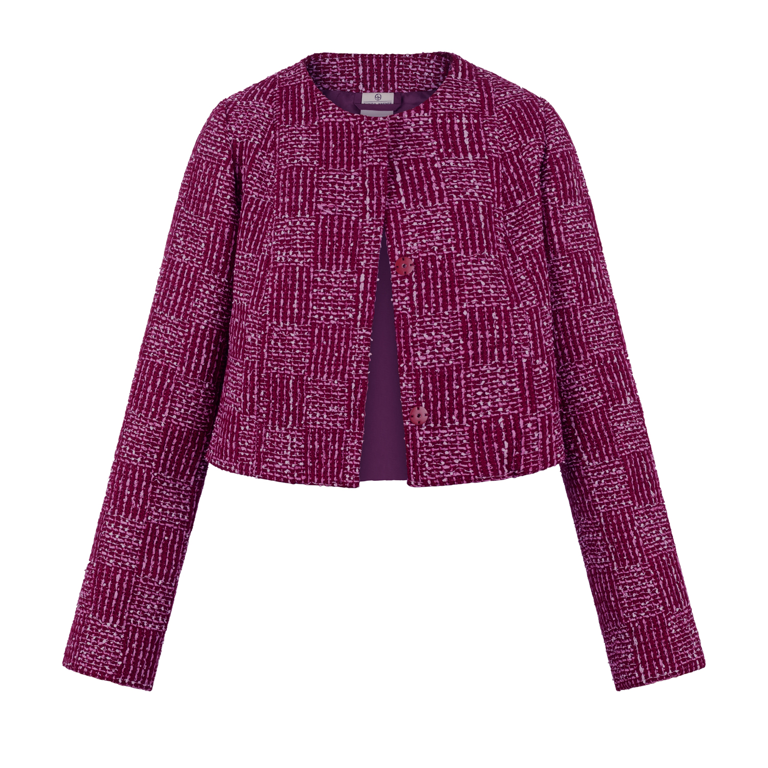 Our tweed jacket embodies timeless elegance, meticulously tailored for a distinguished finish. Cut to the waist and fully lined in fluid viscose, it balances structure with ease, while long sleeves and a refined round neckline evoke a classic, understated silhouette.
