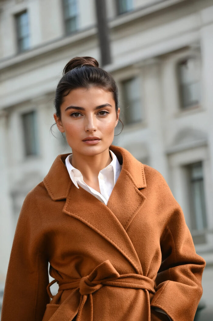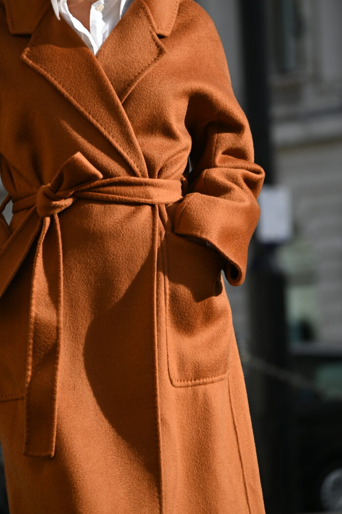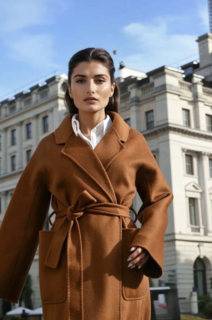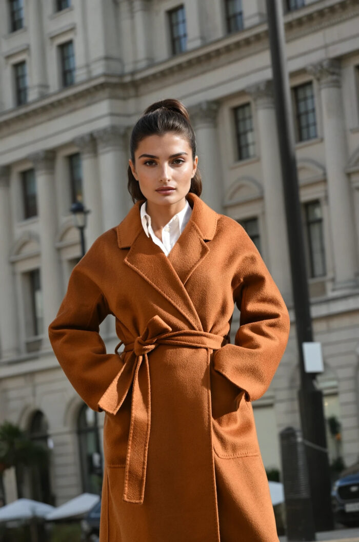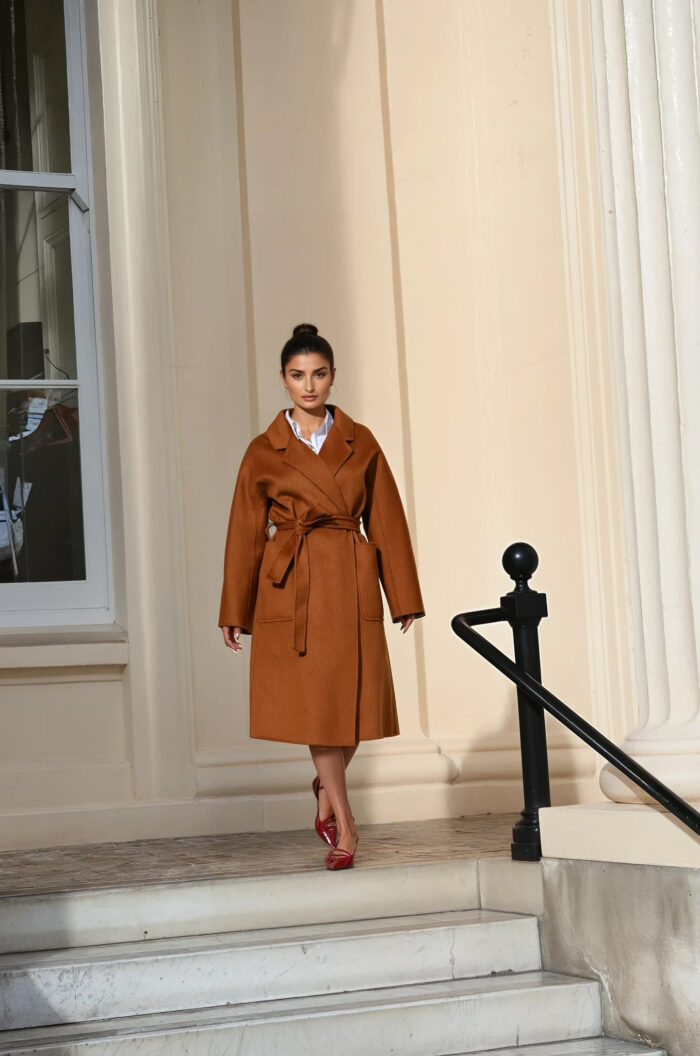 Cammy Wool Coat is the perfect balance of timeless elegance and modern ease. Crafted from a premium wool blend, it offers cosy warmth while maintaining a sleek, tailored silhouette. Featuring a wide lapel collar, relaxed drop shoulders, and a self-tie belt, it effortlessly flatters the figure. In a rich brown hue, this versatile coat elevates both casual and polished looks, making it an essential layering piece for the season