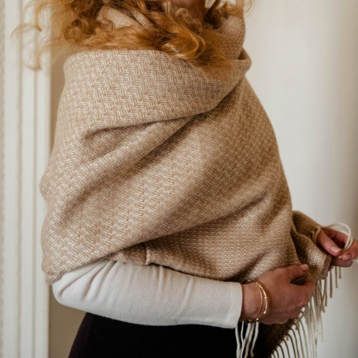 Be the first to review “Caramel Rippling Barley Alpaca Blanket Scarf” Cancel reply