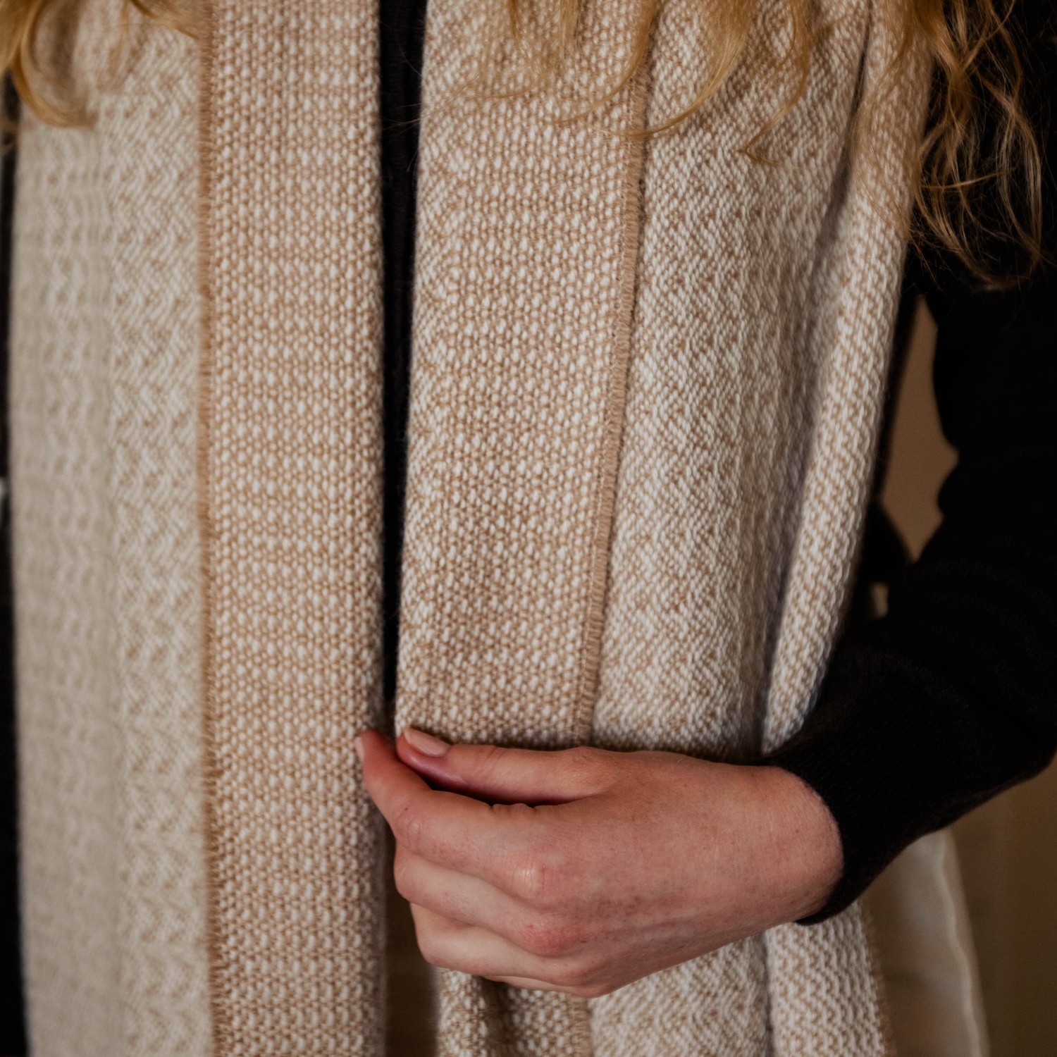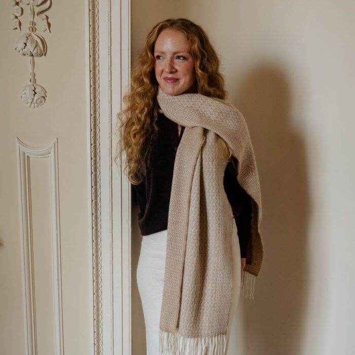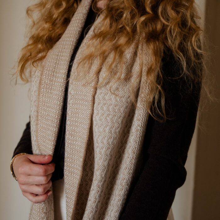 Undyed caramel British alpaca wide scarf