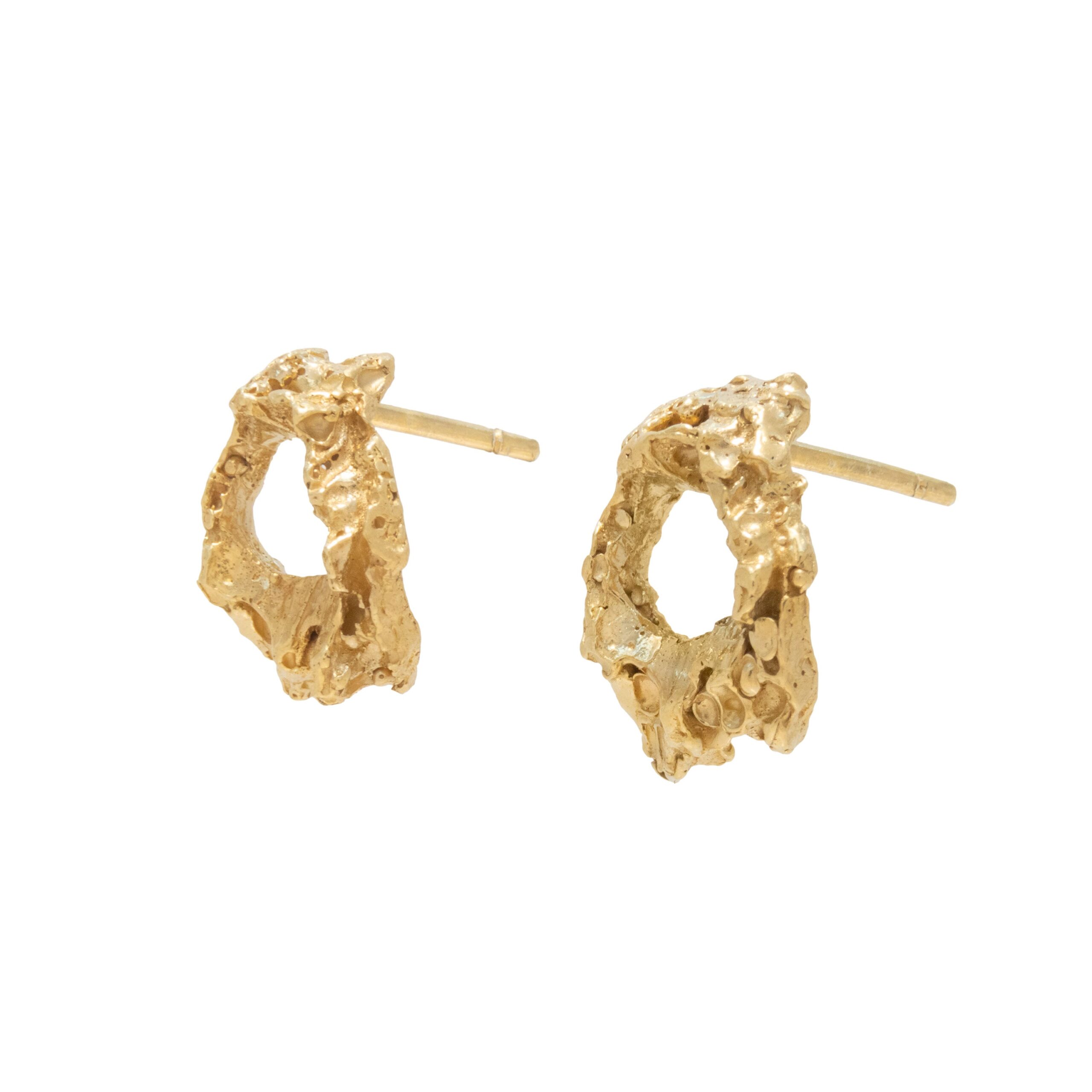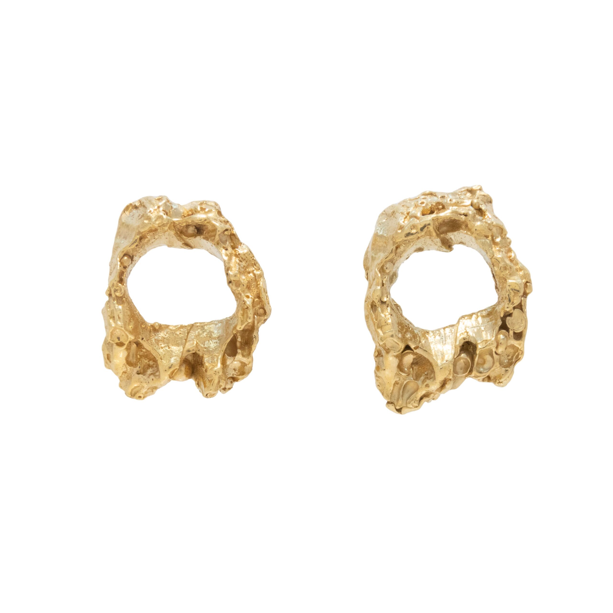 Cea Earrings – The gold-plated silver’s raw finish and mushroom-inspired textures lend Cea an earthy elegance. An embodiment of understated sophistication, perfect for both casual and formal occasions. The play between the abstract shape and the organic textures adds depth and complexity to the design.