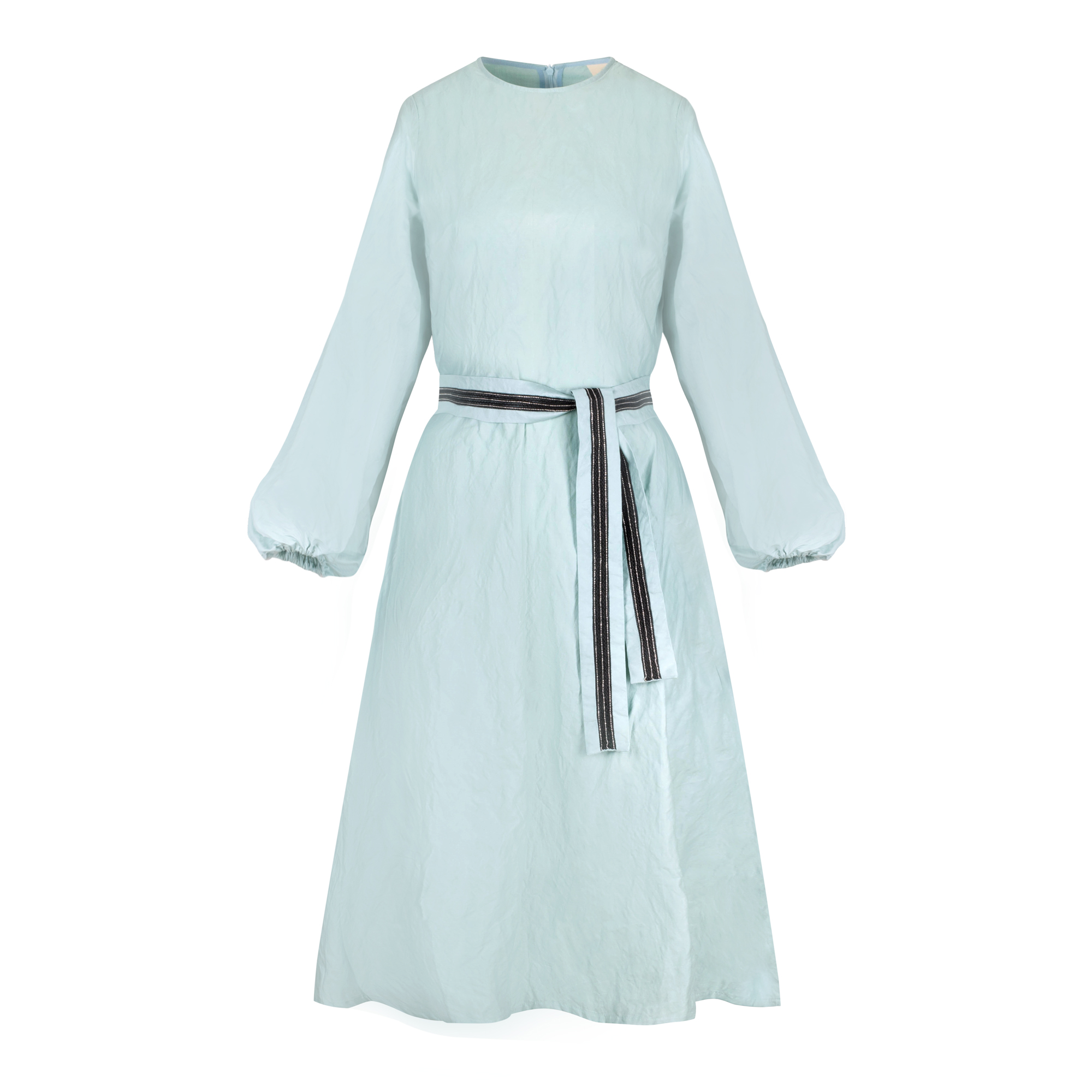 Celeste Blue Cotton Belted Long Sleeve Dress