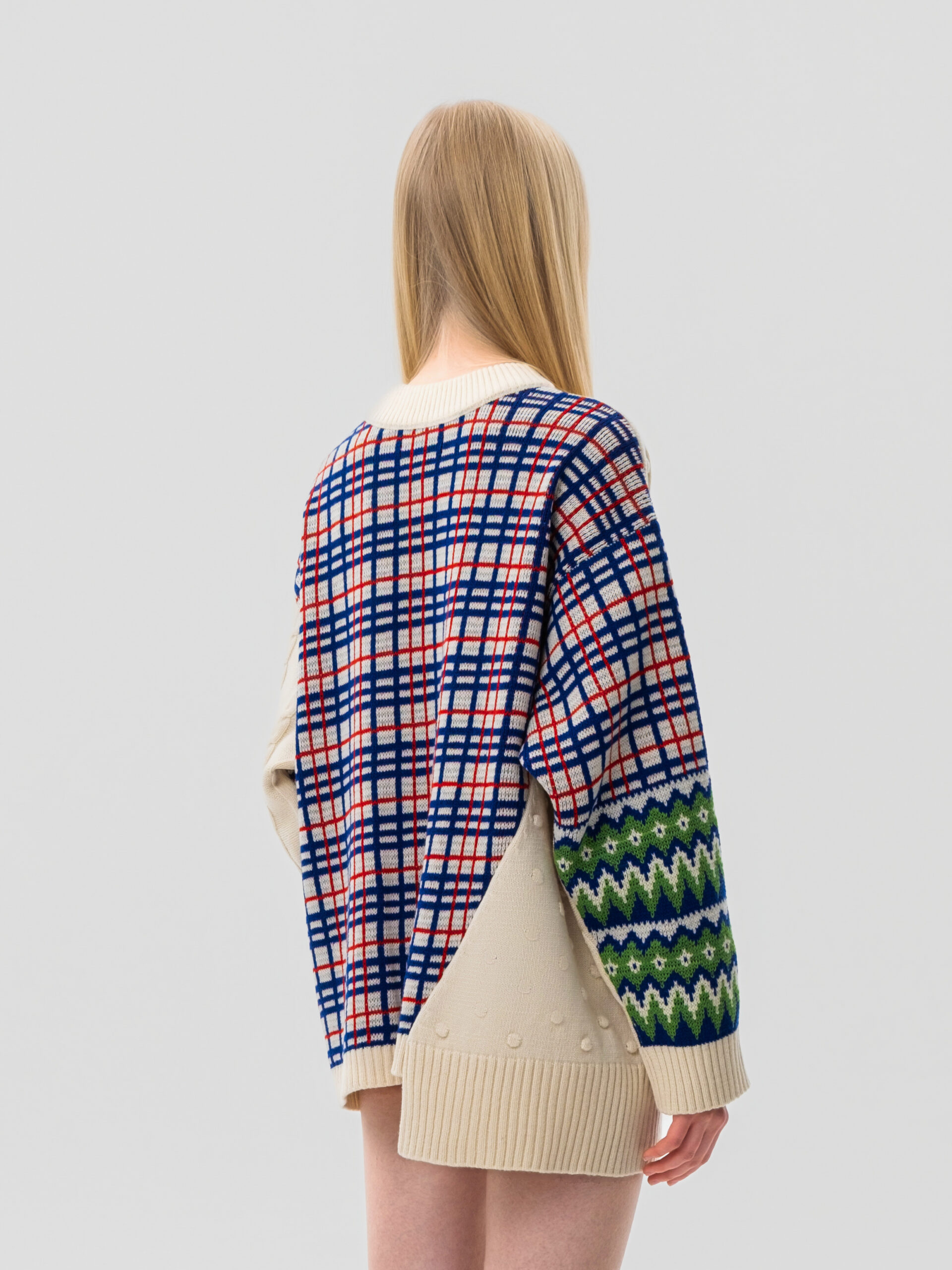 Jacquard sweater with a mix of checked patterns and cable-knit elements, crafted from a soft insulated merino-blend in a relaxed fit.