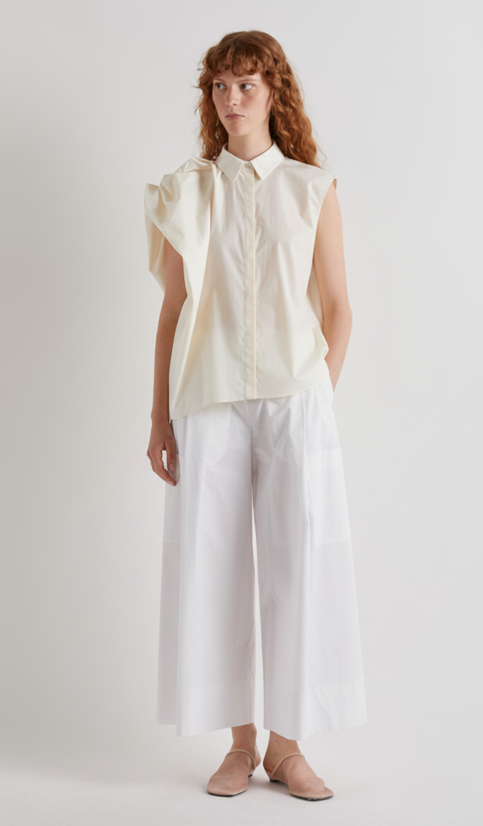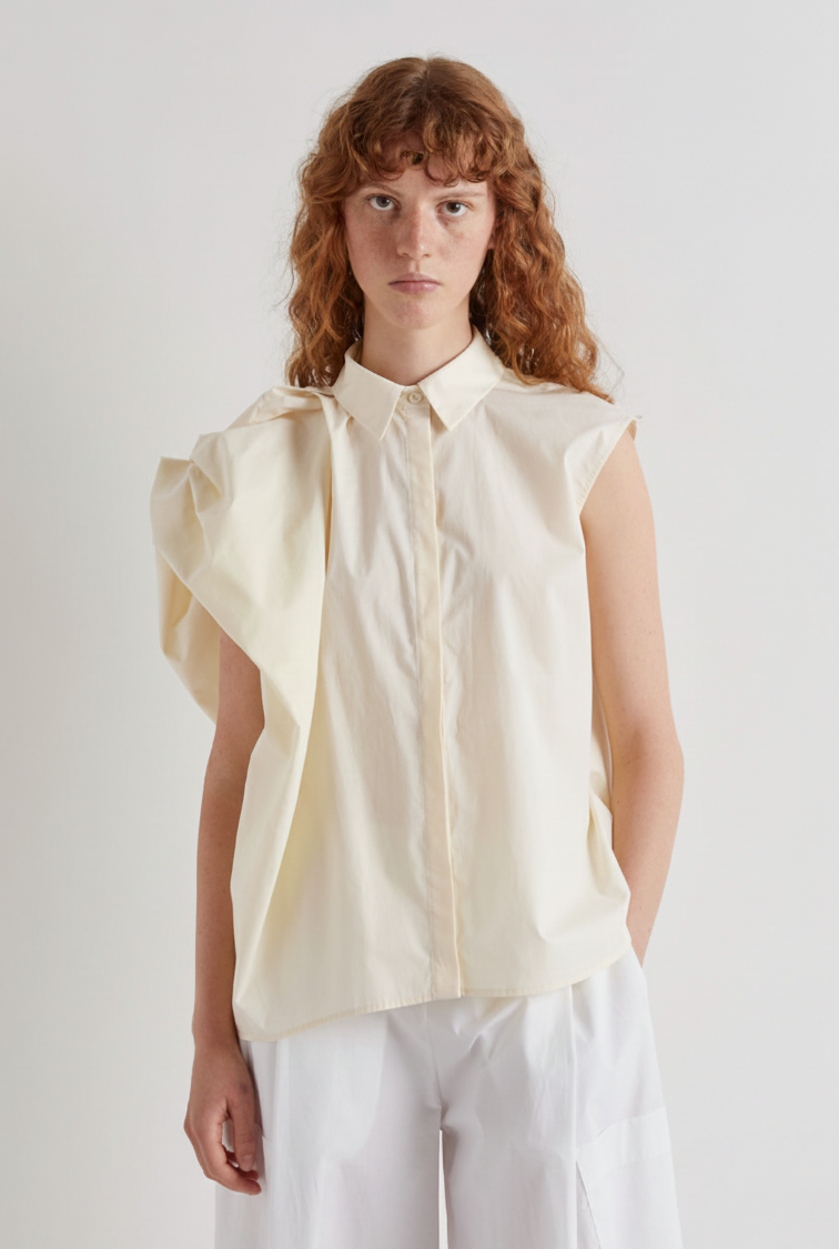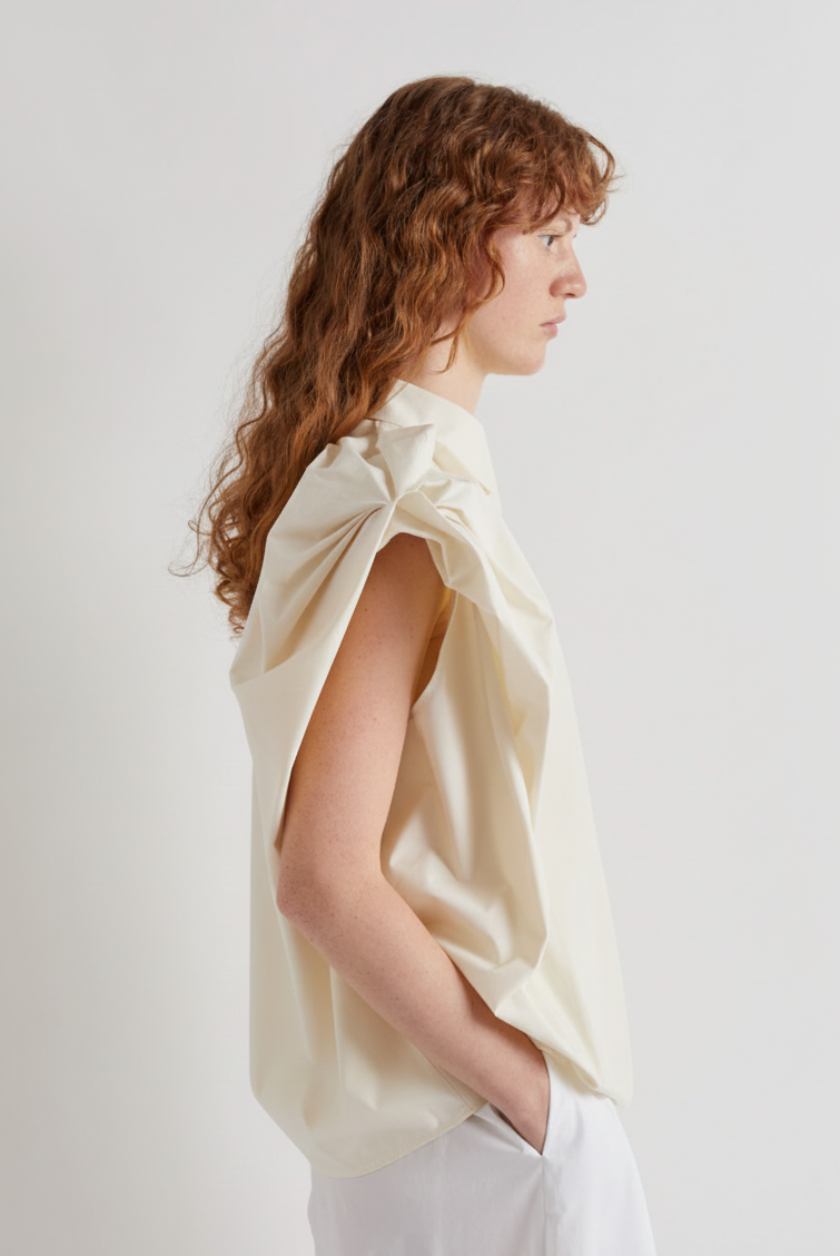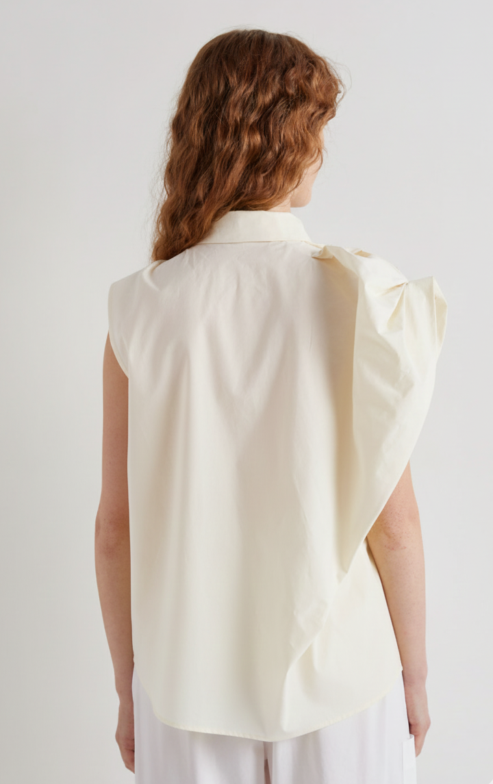 Meimeij Cream Asymmetric Cap Sleeve Shirt