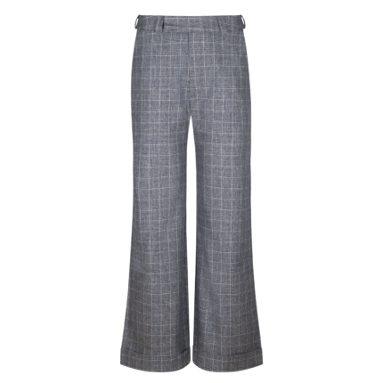 Long wrap skirt in flowing diagonal fabric with front slit. High waist, side closure with hidden buttons and slanted pockets. Fitted at the waist and slightly flared at the hem.