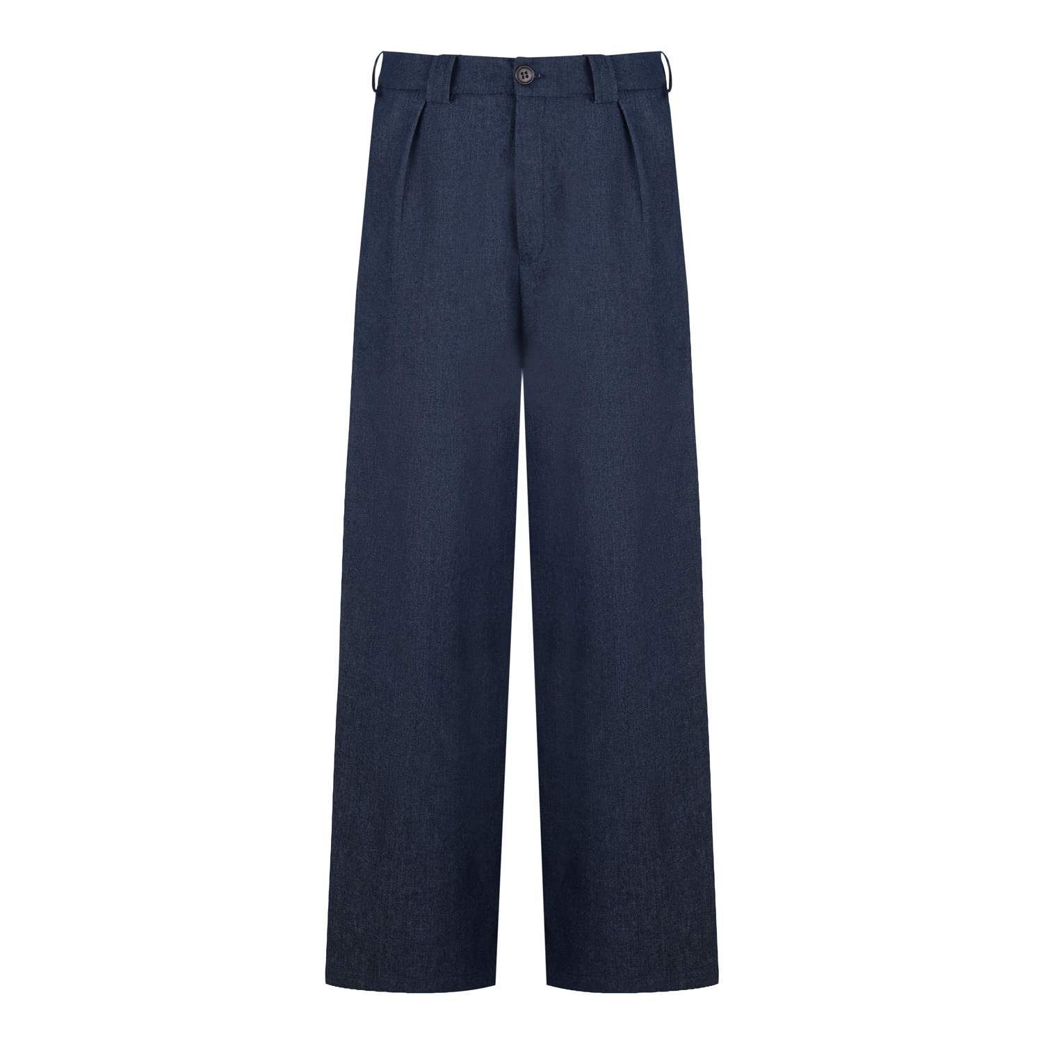 Our navy denim cotton wide-leg trousers offer a modern take on relaxed elegance, crafted for effortless comfort. Featuring an elasticated waist with zip-and-hook fastening, side and back pockets, and a breathable cotton-elastane blend, they provide flexibility and ease of movement. Available in green and navy denim, these small-batch, locally produced trousers are made from natural fibres for a thoughtful, versatile addition to any wardrobe.
