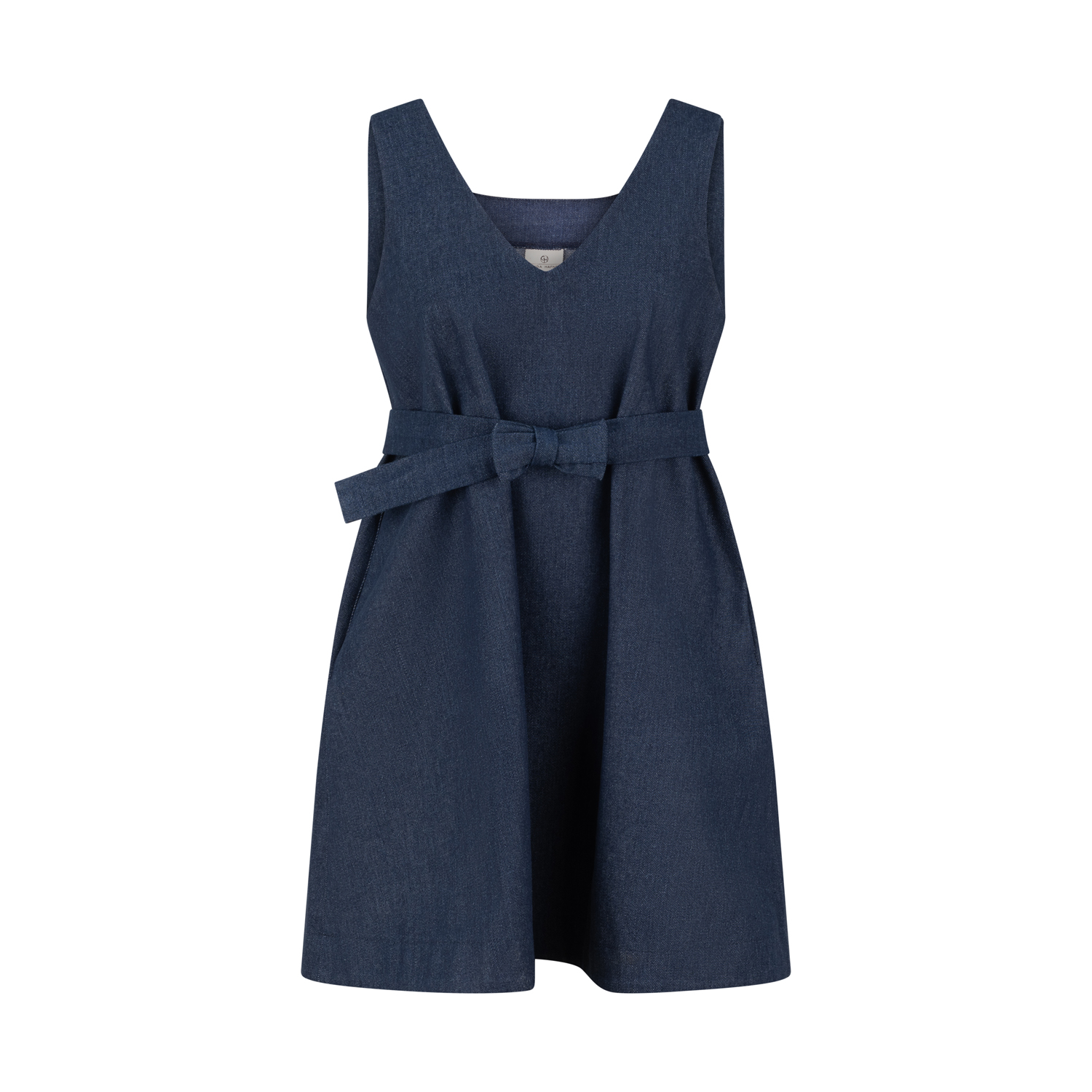 Our denim sleeveless mini dress features a flattering A-line silhouette and a versatile bow belt that can be fastened under the bust or at the waist. Ready-to-wear and designed for effortless style, it combines relaxed ease with contemporary elegance, making it a chic, adaptable addition to any wardrobe.