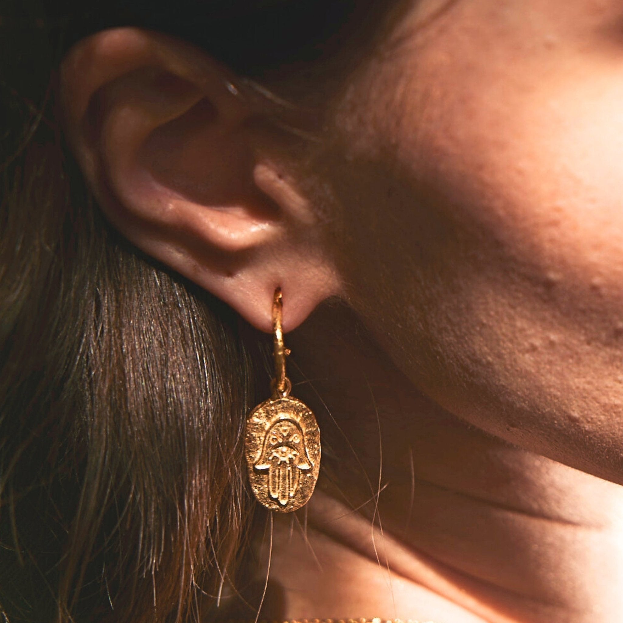 As one of Kensho’s most demanded heirloom, choose to adorn your inner mystic with a Hamsa Stud or Hoops, paired with the Hamsa Charm Necklace.