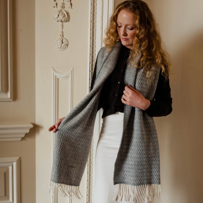Be the first to review “Grey Rippling Barley Wide Alpaca Scarf” Cancel reply
