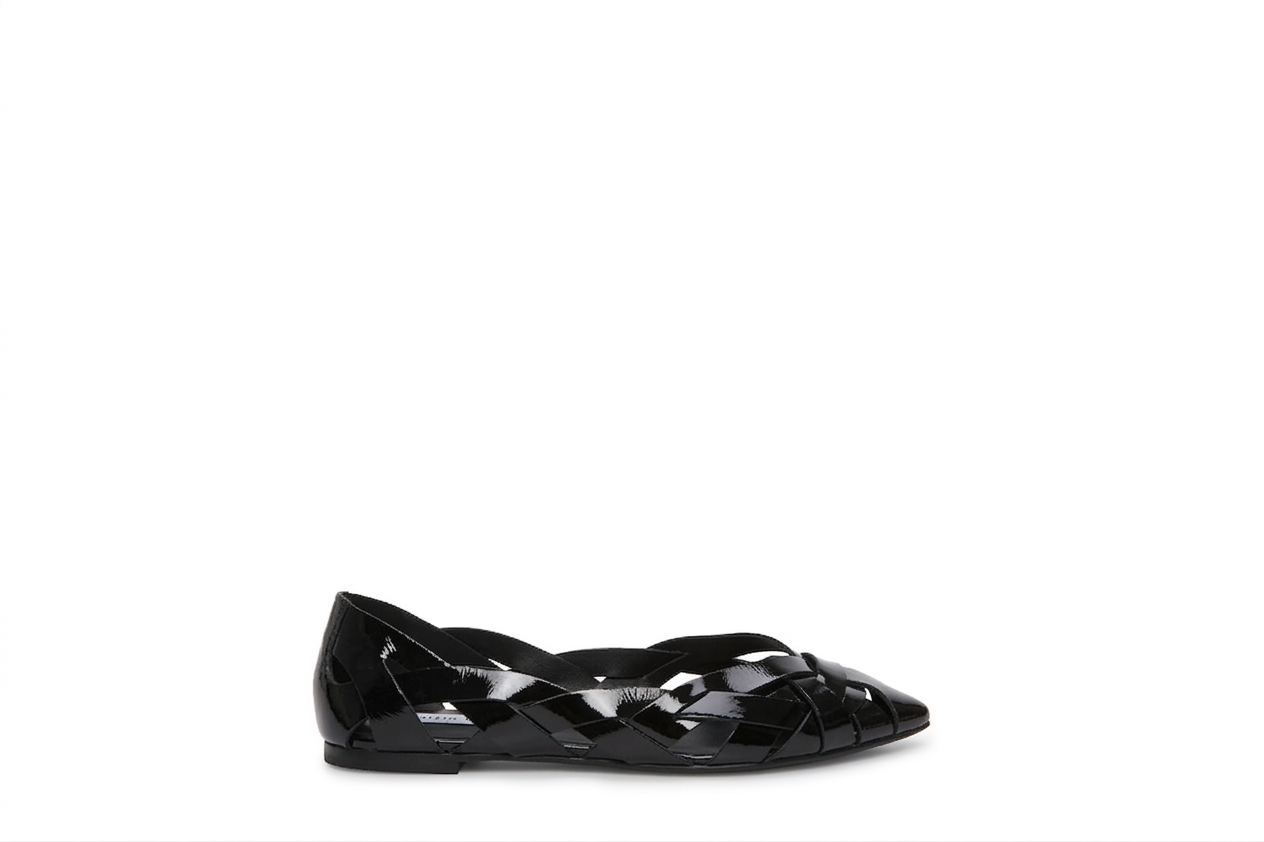 Italian Leather Woven Flats – Black