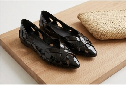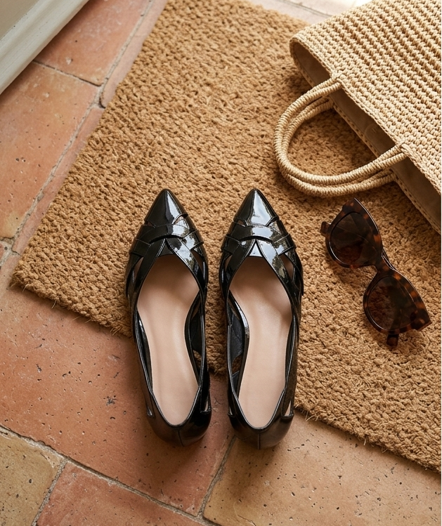 Home WORKWEAR Italian Leather Woven Flats – Black