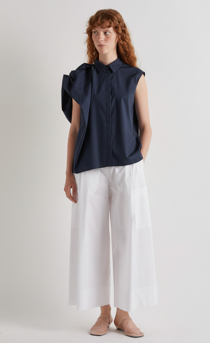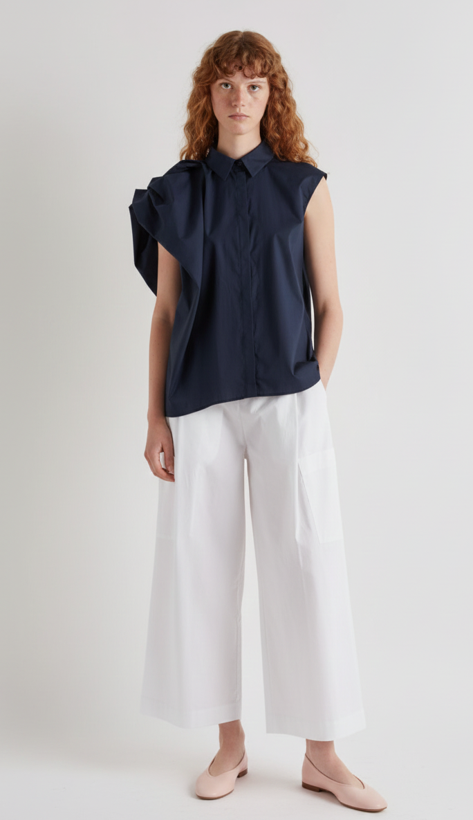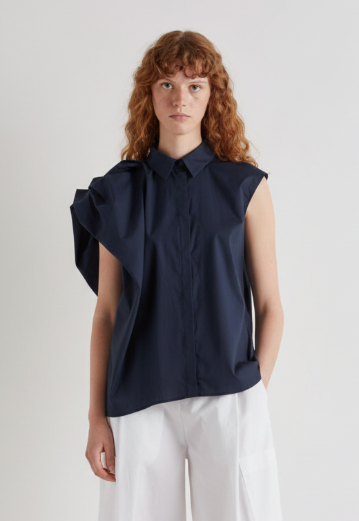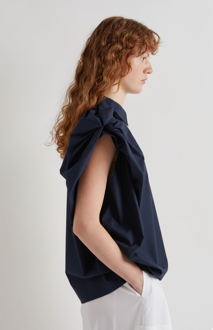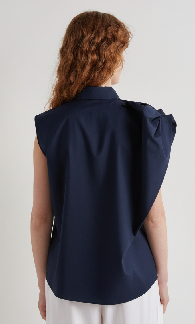 Meimeij Navy Asymmetric Cap Sleeve Shirt