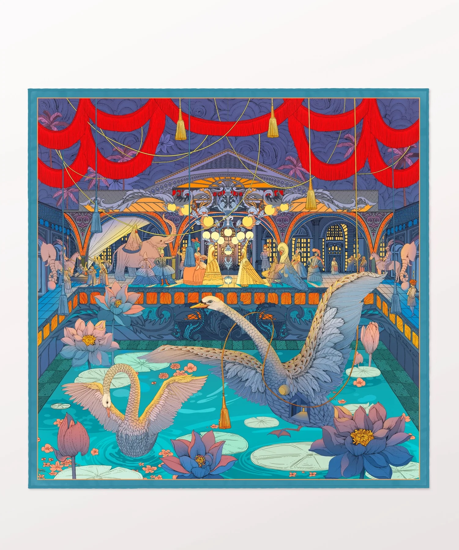 We love this stunning drawing taking inspiration from the opera houses of London and Paris. This detailed piece features a scene on stage with elegant swans in a lake adding a liveliness to the scene.