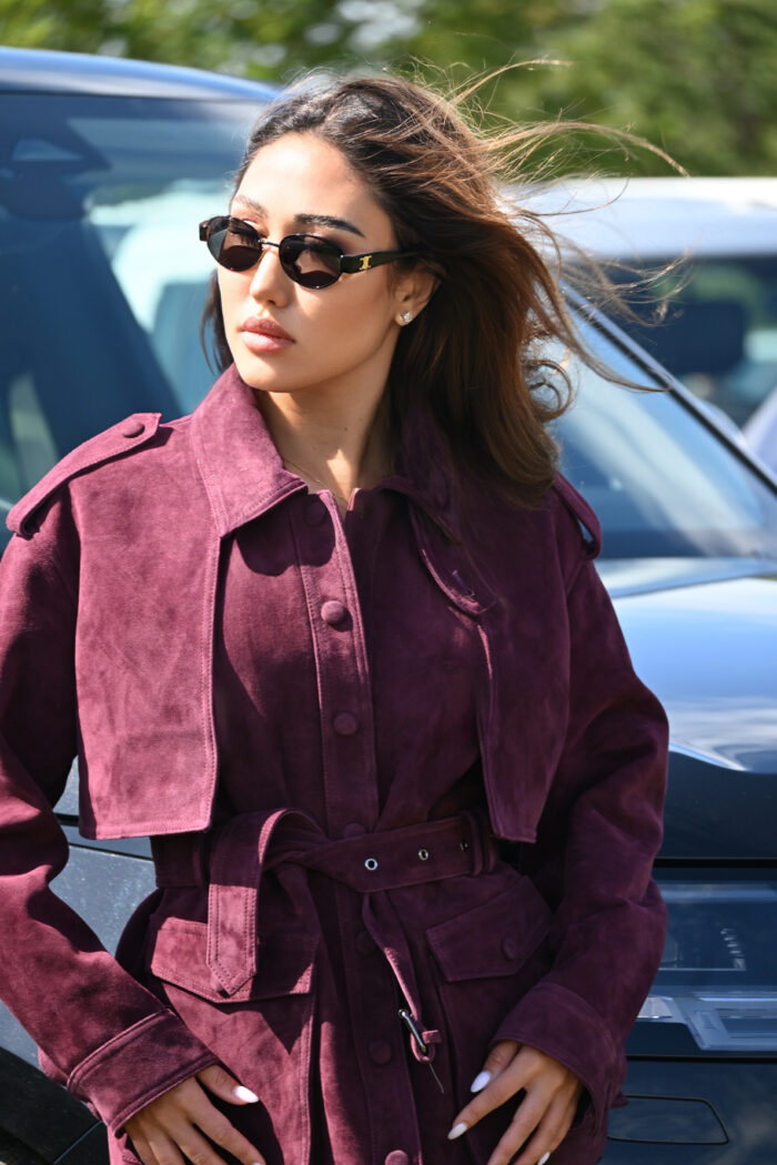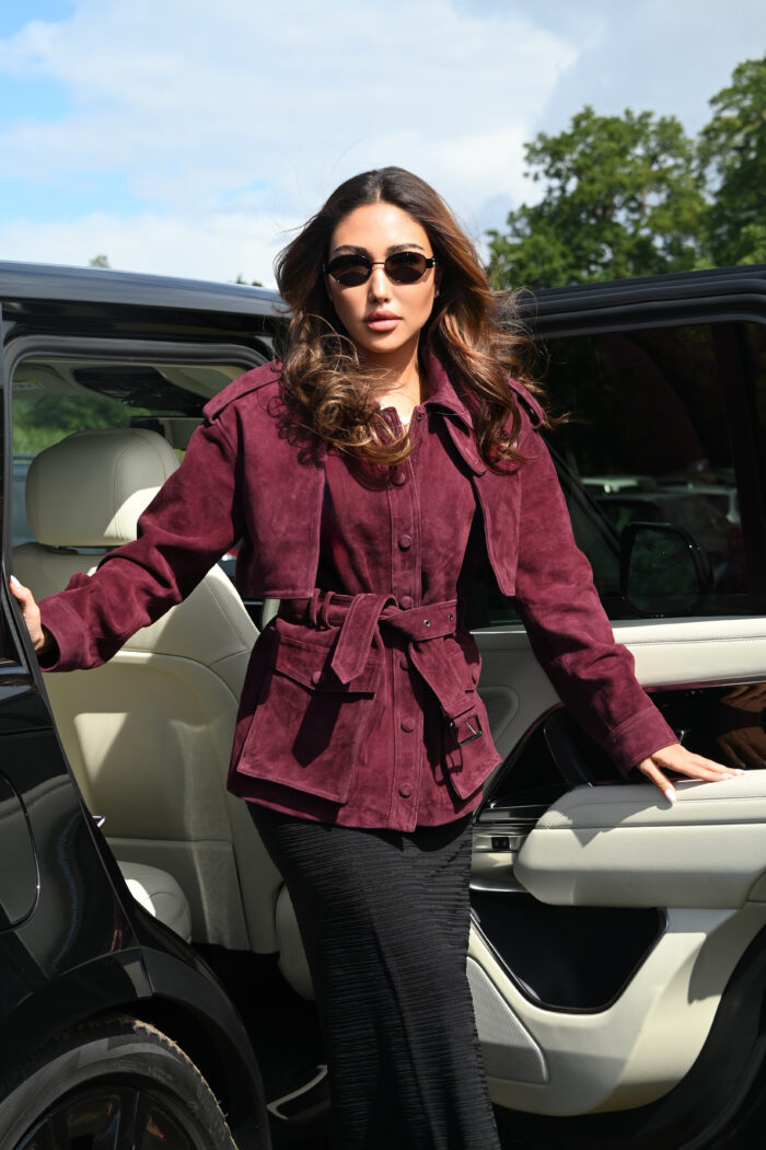 Reina Burgundy Jacket is crafted from soft, luxe suede with a flattering belted waist and cropped overlay design. Blending timeless trench details with a modern twist, it features a structured collar, storm-flap accents, and clean tailoring for a refined finish. Versatile enough to transition from day to night, this jacket adds effortless sophistication to any wardrobe.
