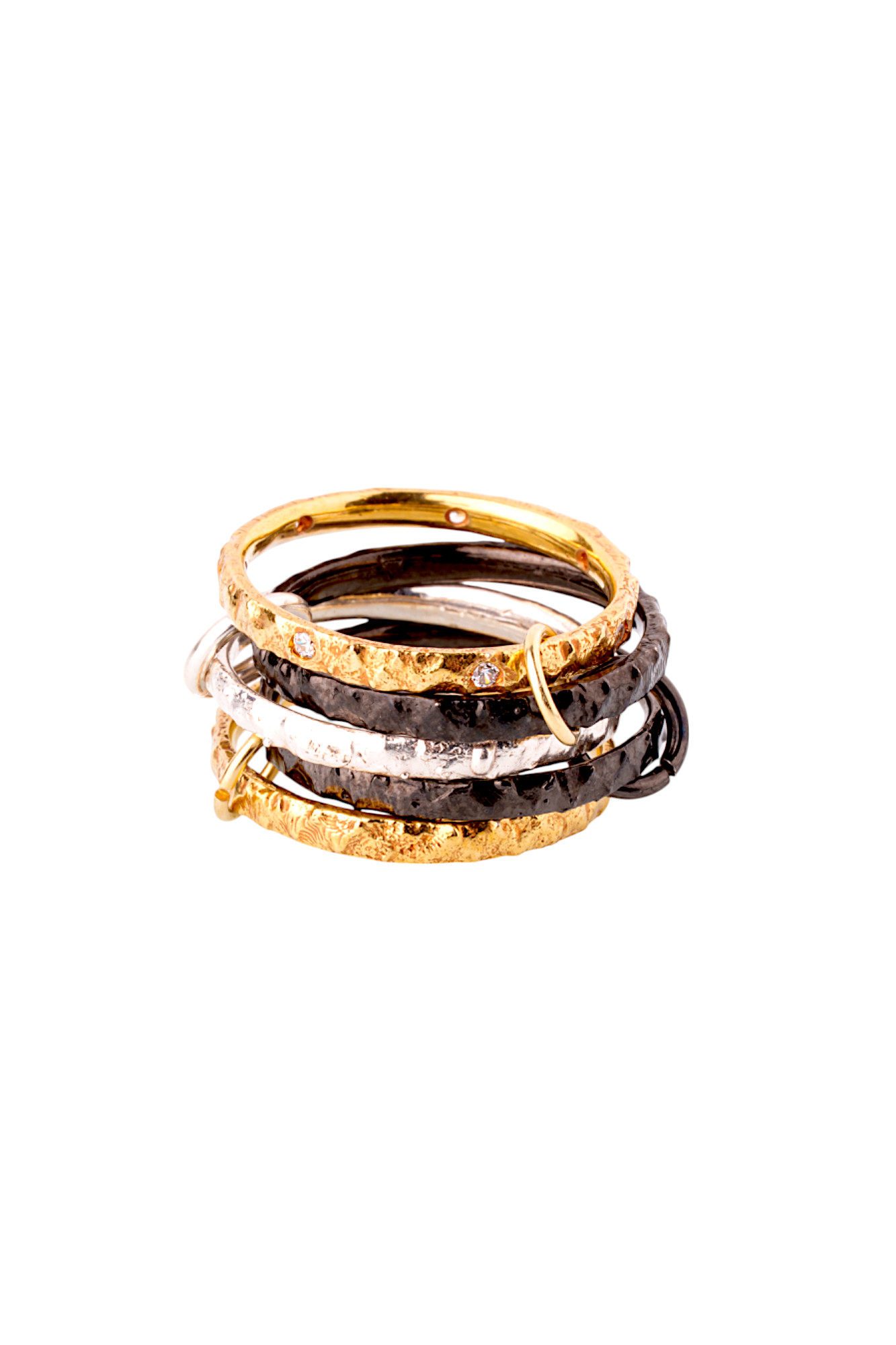 Elements combines our most iconic rings into a single piece, linked by delicate jump rings that allow for movement, play, and personality. Each combination is unique. Timeless, versatile, and full of character. Designed to be with you, always. All our jewelry is handcrafted with dedication and care.