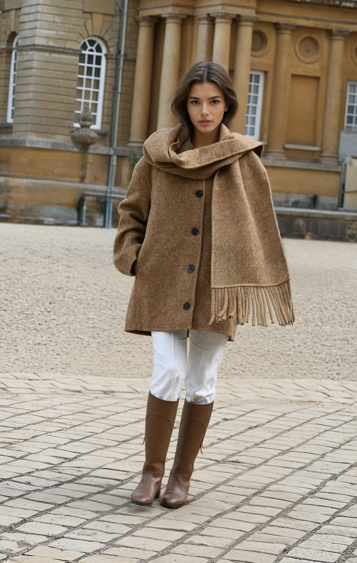 Sandy Scarf Coat is crafted from soft, insulating wool, this statement piece features an oversized scarf collar that drapes elegantly for both style and warmth. Its relaxed silhouette and free-size design ensure a comfortable, flattering fit across body types, making it a versatile essential for cold-weather layering. Pair it with anything from denim to tailoring for a timeless, chic finish.