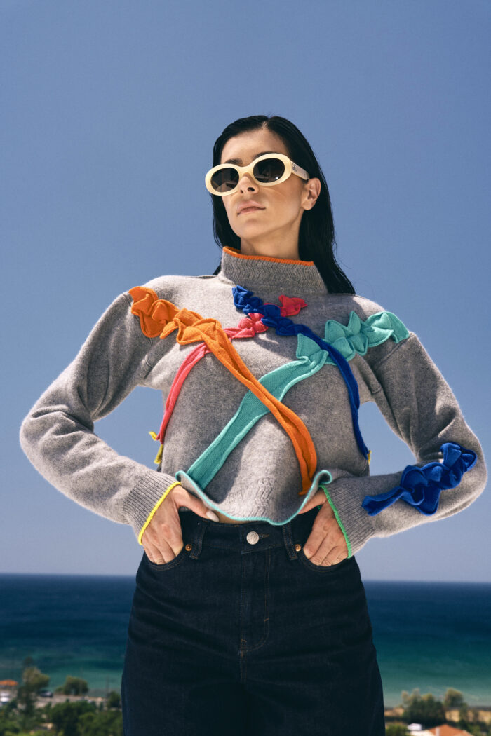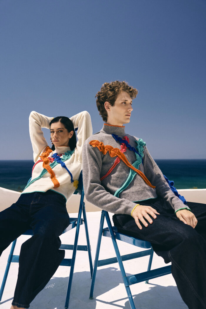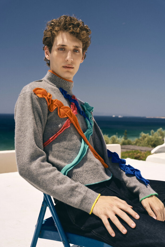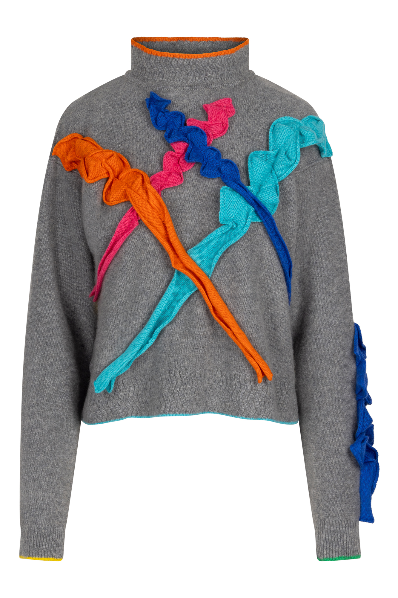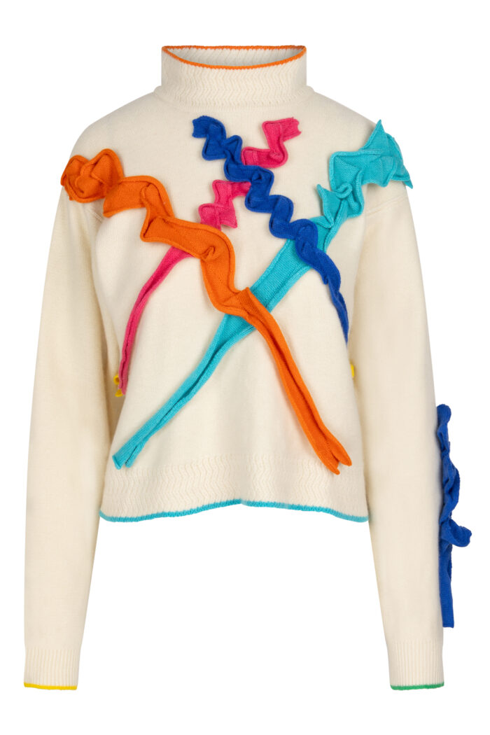 Our ode to the art work, a sketch that starts with a scribble, our cashmere high neck scribble jumper comes in two colours, the yarn is the canvas, super soft, bright contrast details.
