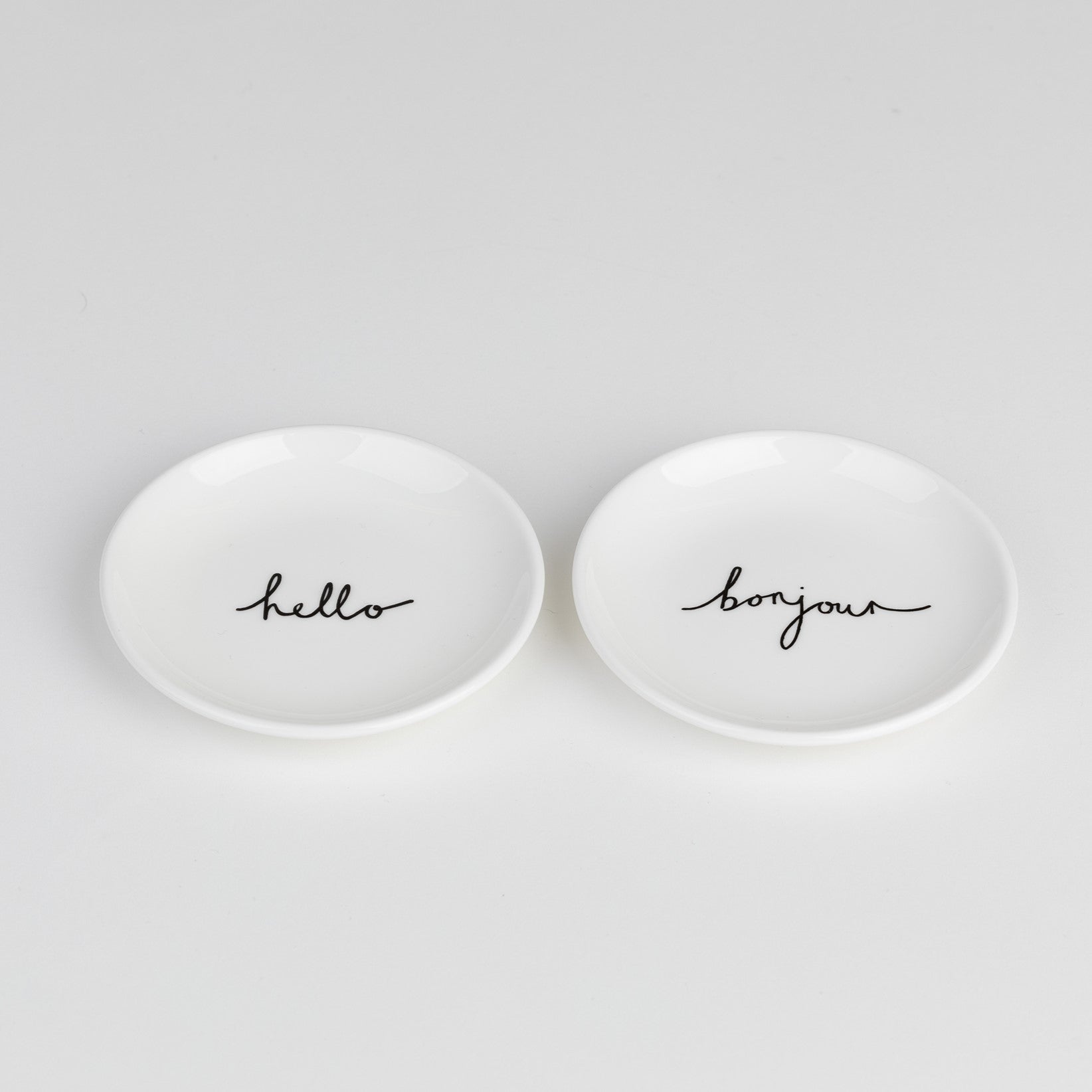 Sold By : BYAM England SKU: set of 2 coasters- hello, bonjour Categories: CERAMICS, HOME AND LIFESTYLE, TABLEWARE