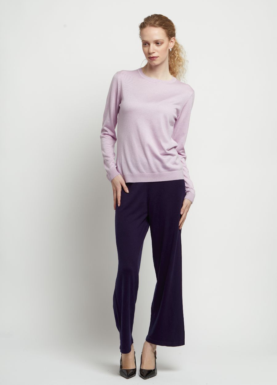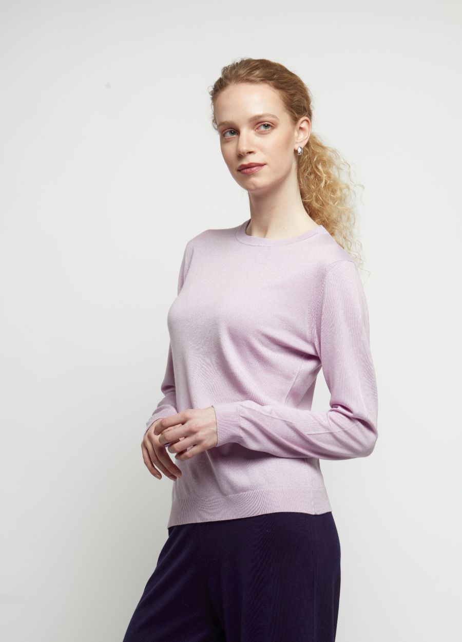 This crew neck knitted top is crafted from a luxurious 15% cashmere and 85% silk blend, offering a soft and smooth feel. The 2-ply 16gg fine gauge knit ensures a light, cool texture, making it perfect for layering. Elegantly minimal, this essential basic piece effortlessly complements any outfit, adding a classic touch to your wardrobe that stands the test of time.