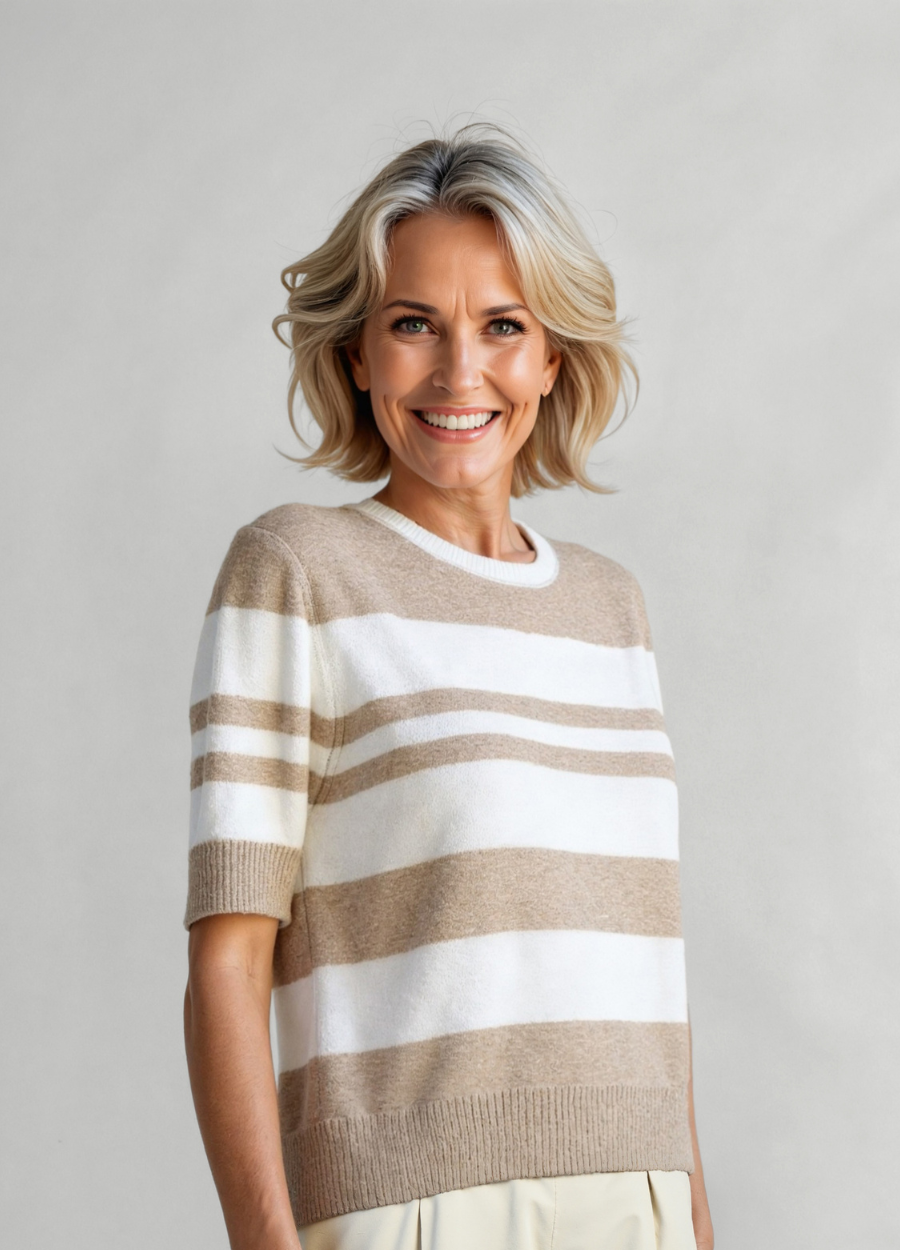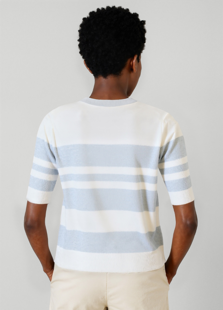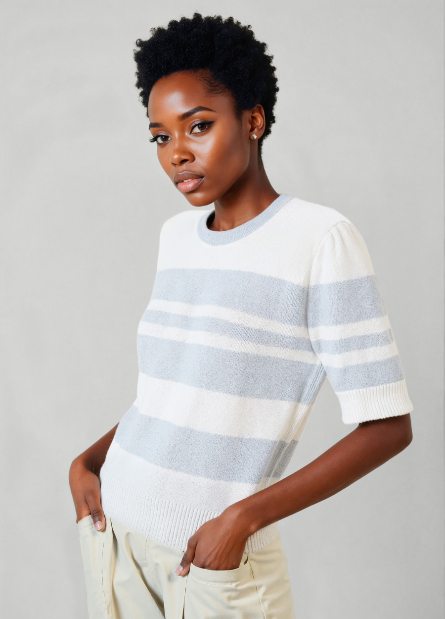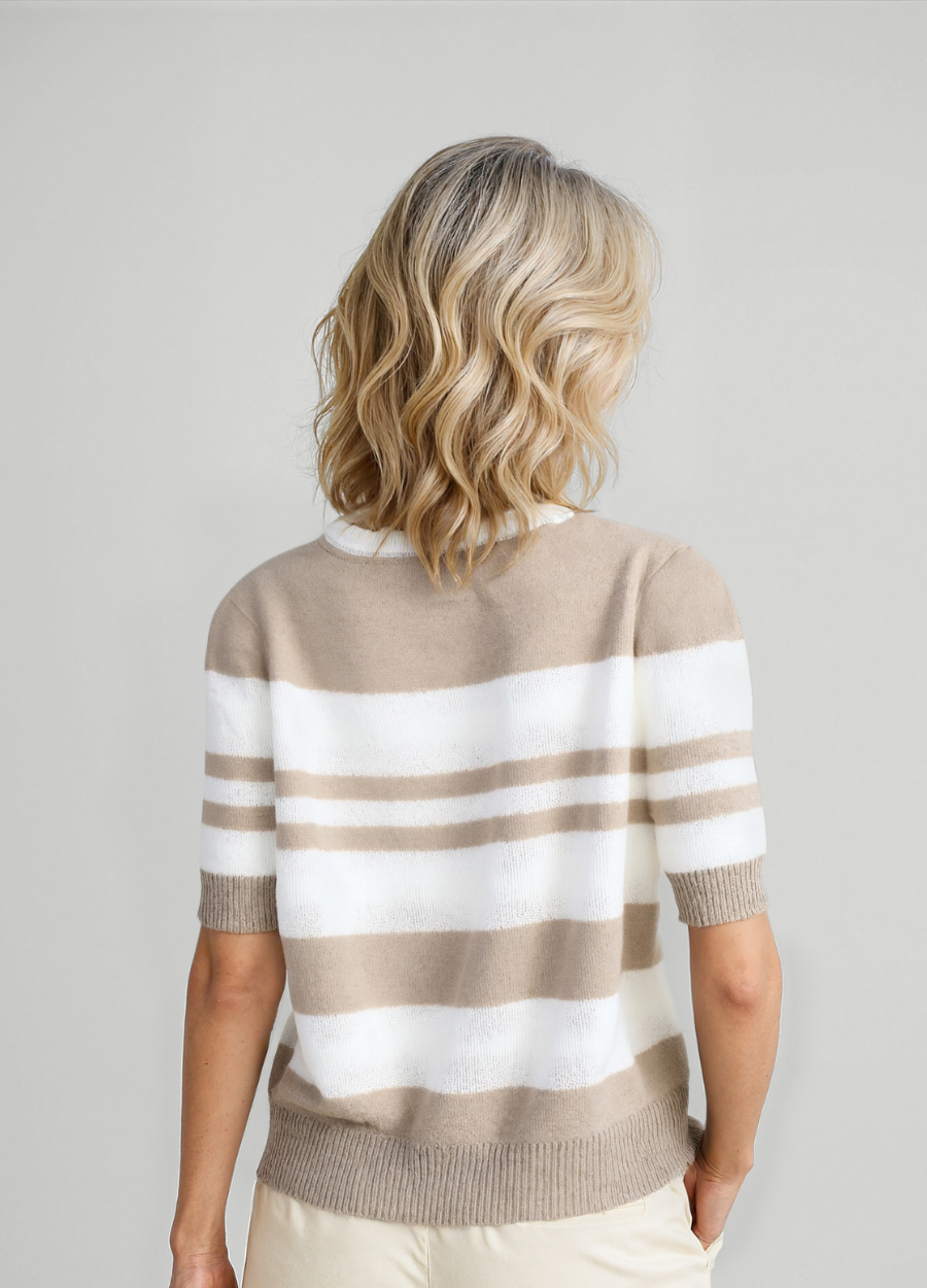 Sold By : Denner Cashmere SKU: STSCD Categories: crew neck, knit top, KNITWEAR Tags: crewneck, pullover, pure cashmere, short sleeves, striped