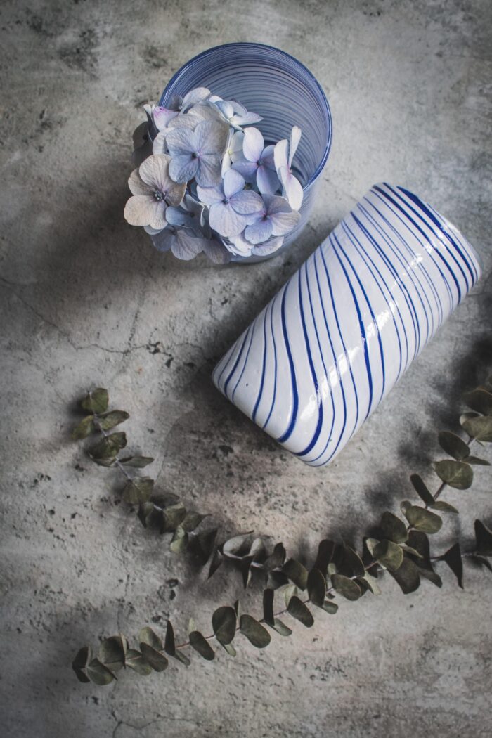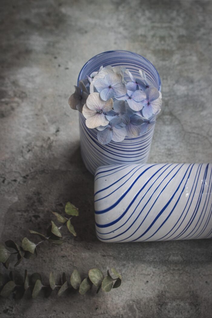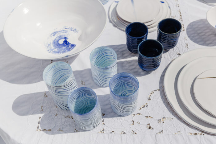 Our water glasses emphasize a timeless, tactile aesthetic. Made using waste-conscious production processes, this water glass has been handblown by skilled Kenyan artisans from tonal-blue and white glass.