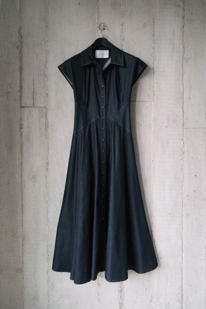 Crafted from a crisp Japanese mid-weight cotton denim, with topstitch detailing. The dress comes with a belt attached at the back. For a relaxed look, tie the belt at the back or else wrap it around to the front to cinch in the waist.