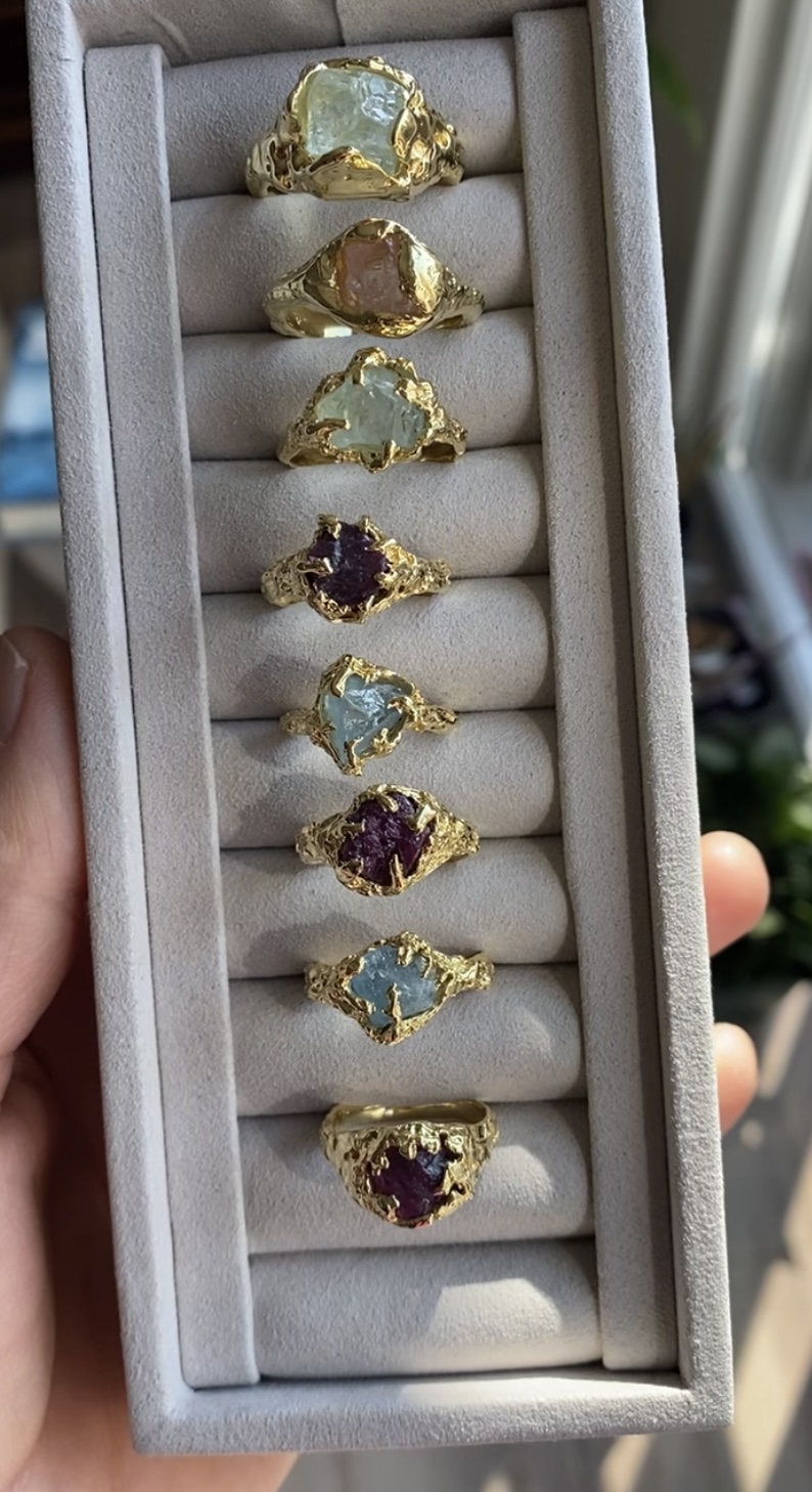 Each silver ring is individually hand-carved from wax, shaped by the unique form of the stone.