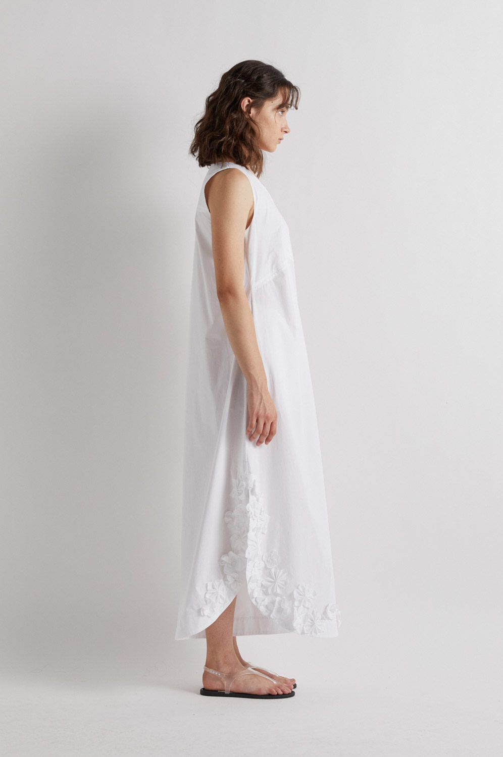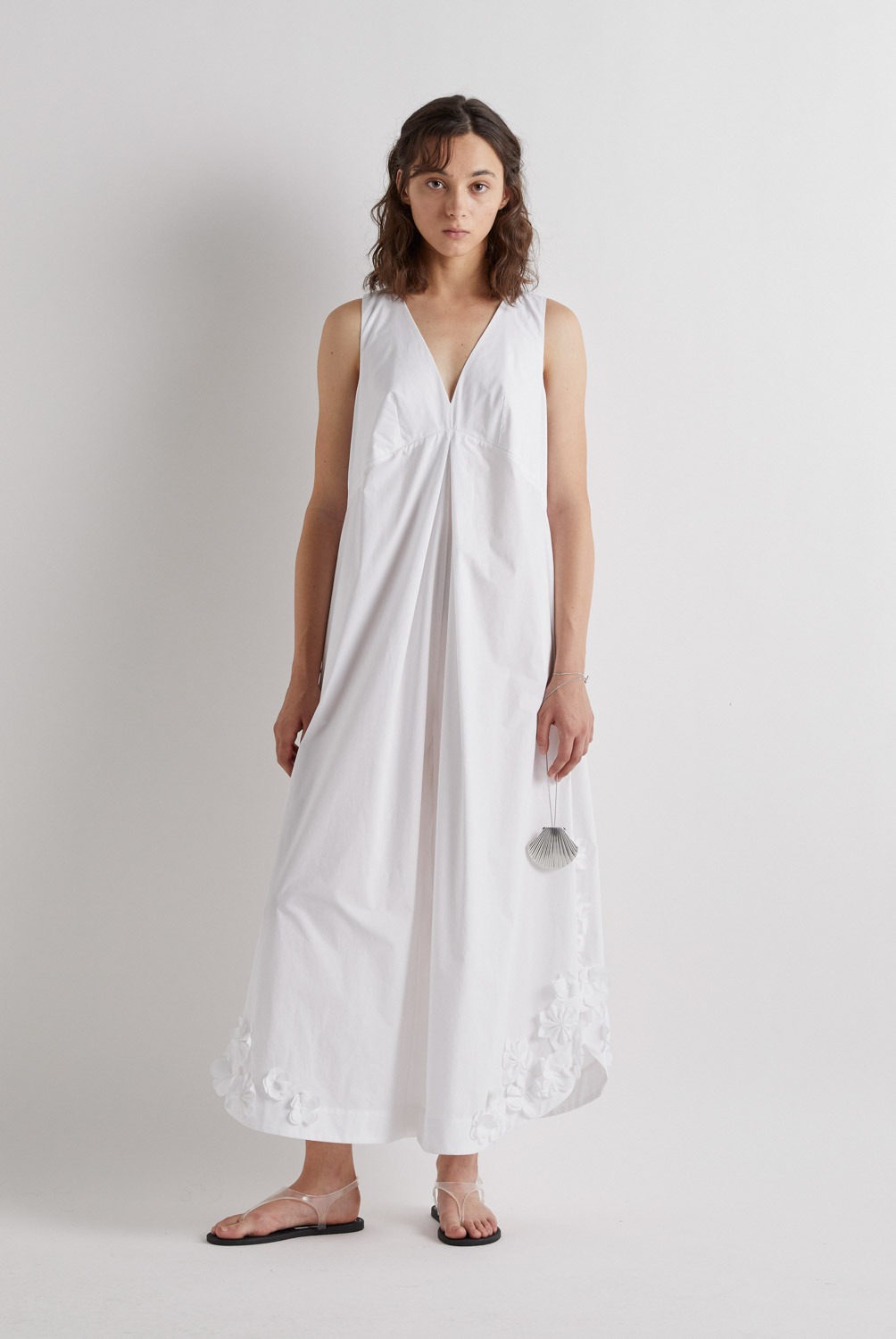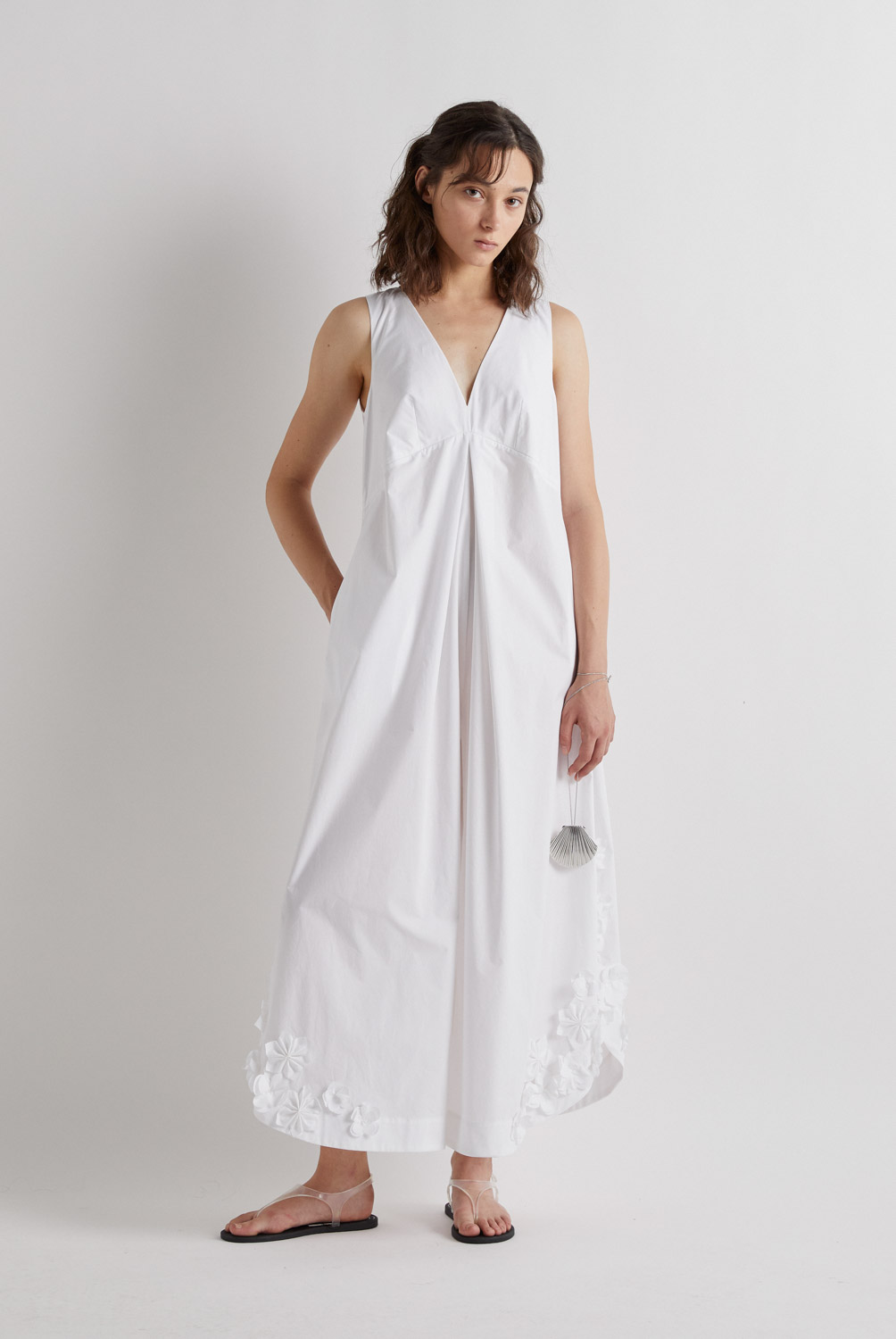 Nothing says sunshine like this airy cotton floral jumpsuit! Made in Italy from 100% cotton. Featuring a flattering V-neckline and relaxed fit down with pockets down to the feminine round split leg with floral appliqué. Perfect for brunches, garden parties, or sunny days out, this jumpsuit will keep you comfortable and chic no matter the occasion.