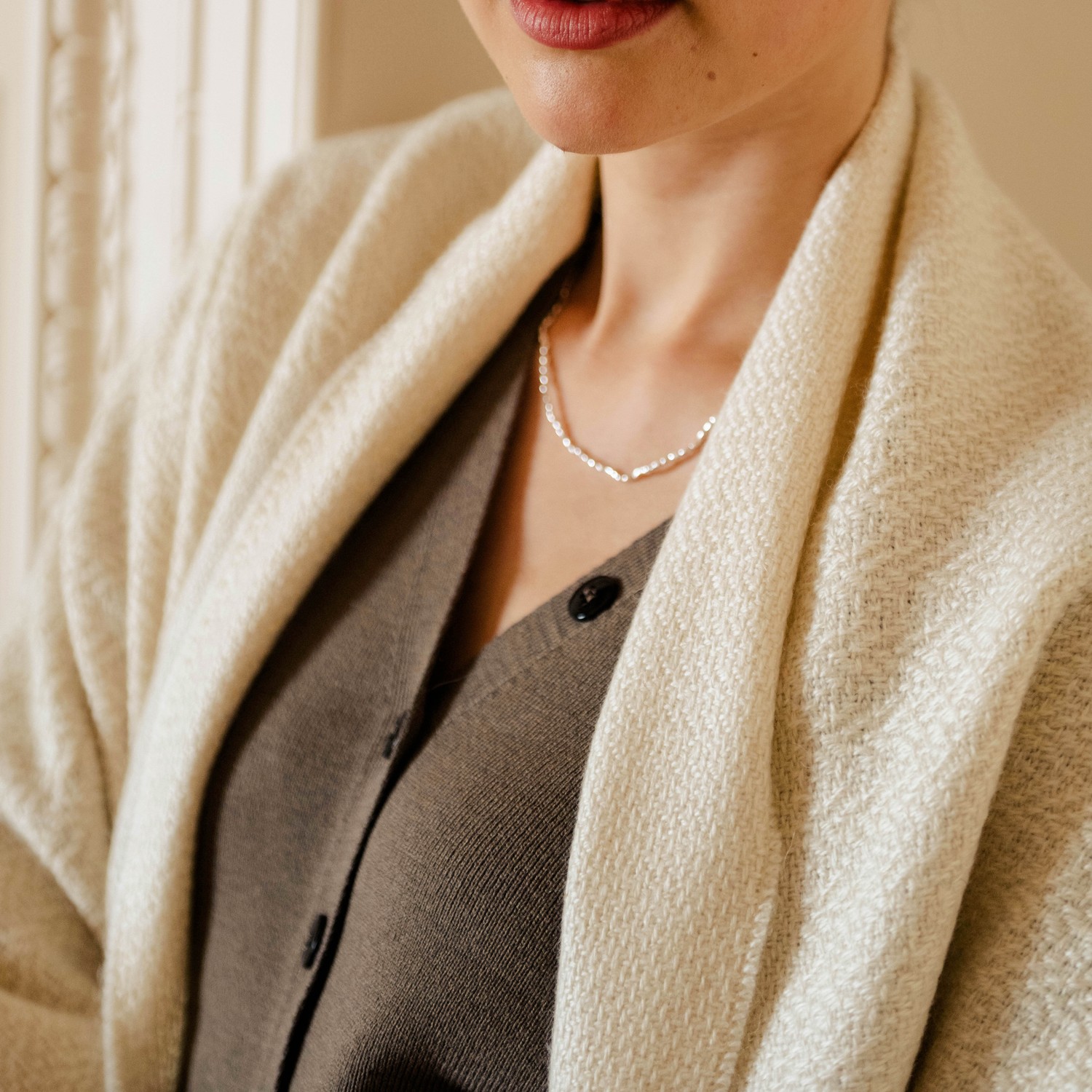 85% British alpaca + 15% rose fibre – irresistibly soft with a natural luminosity
