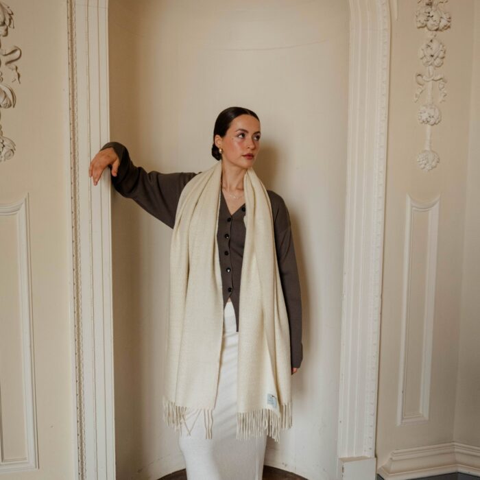Be the first to review “White Harvest Grain Alpaca Wide Scarf” Cancel reply