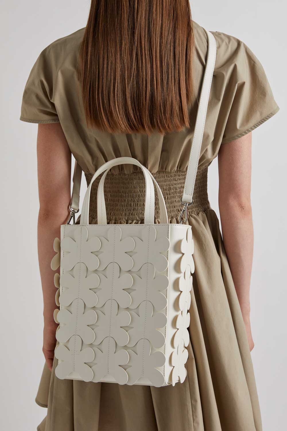 Meimeij White Leather Flower Tote Bag