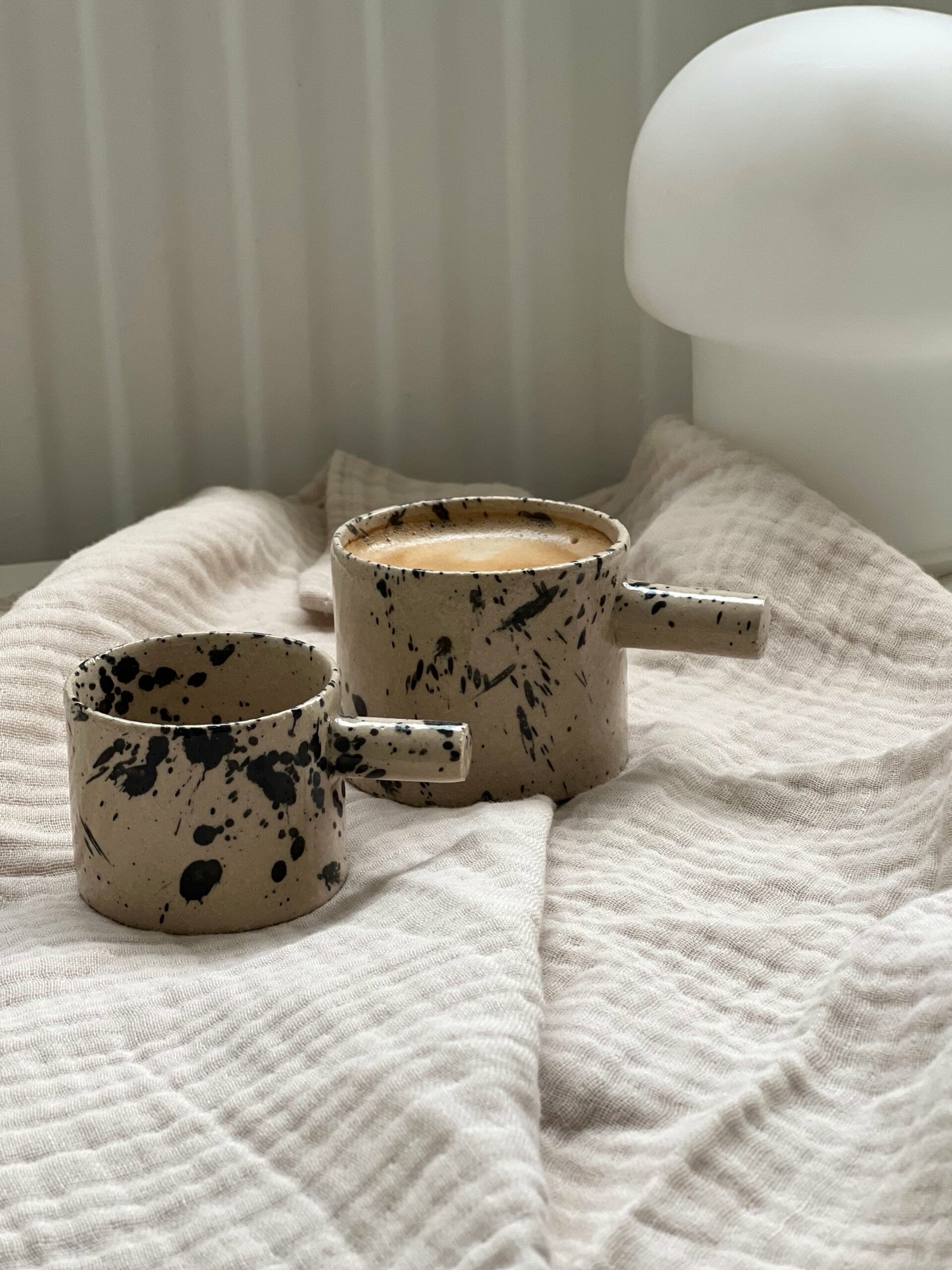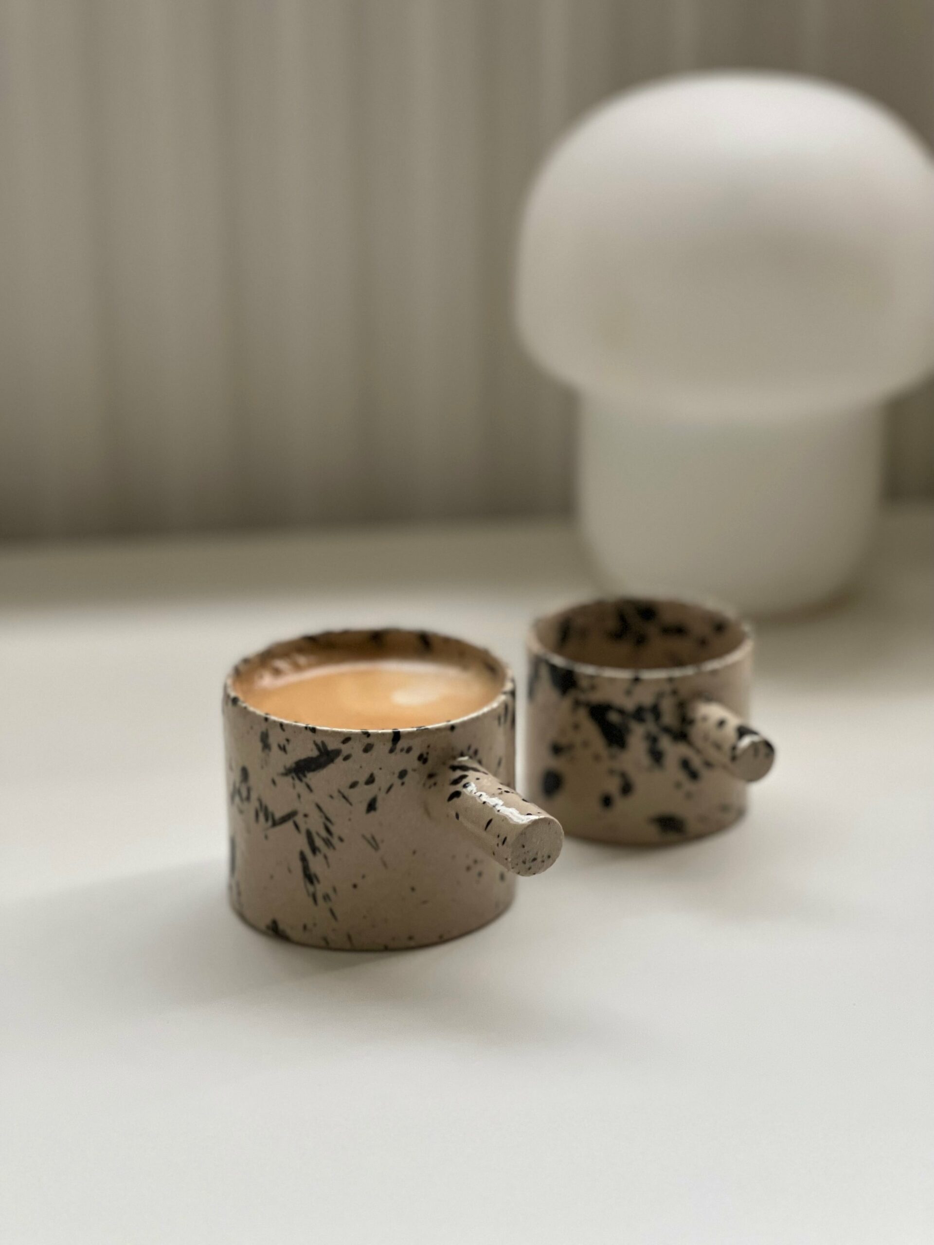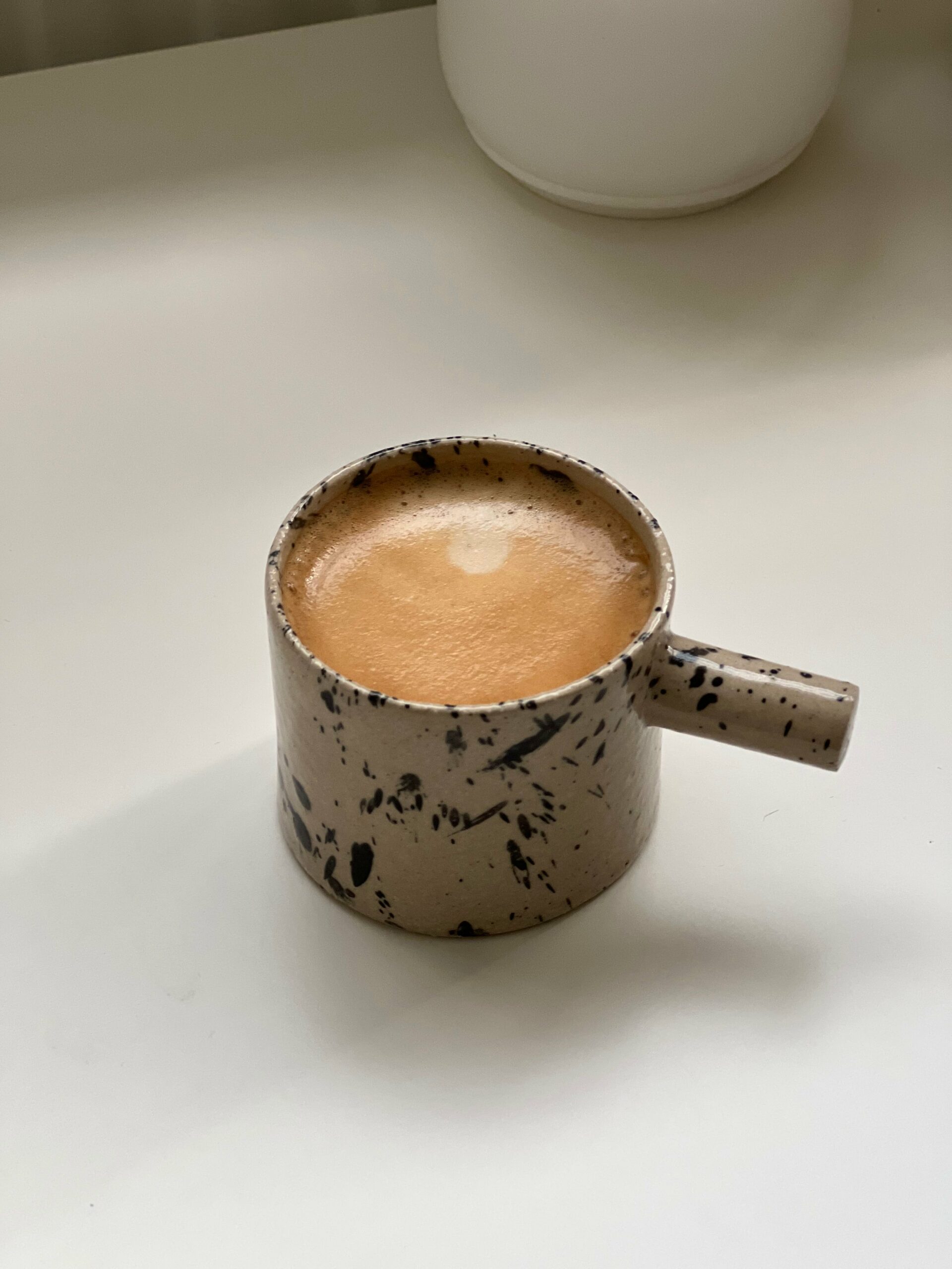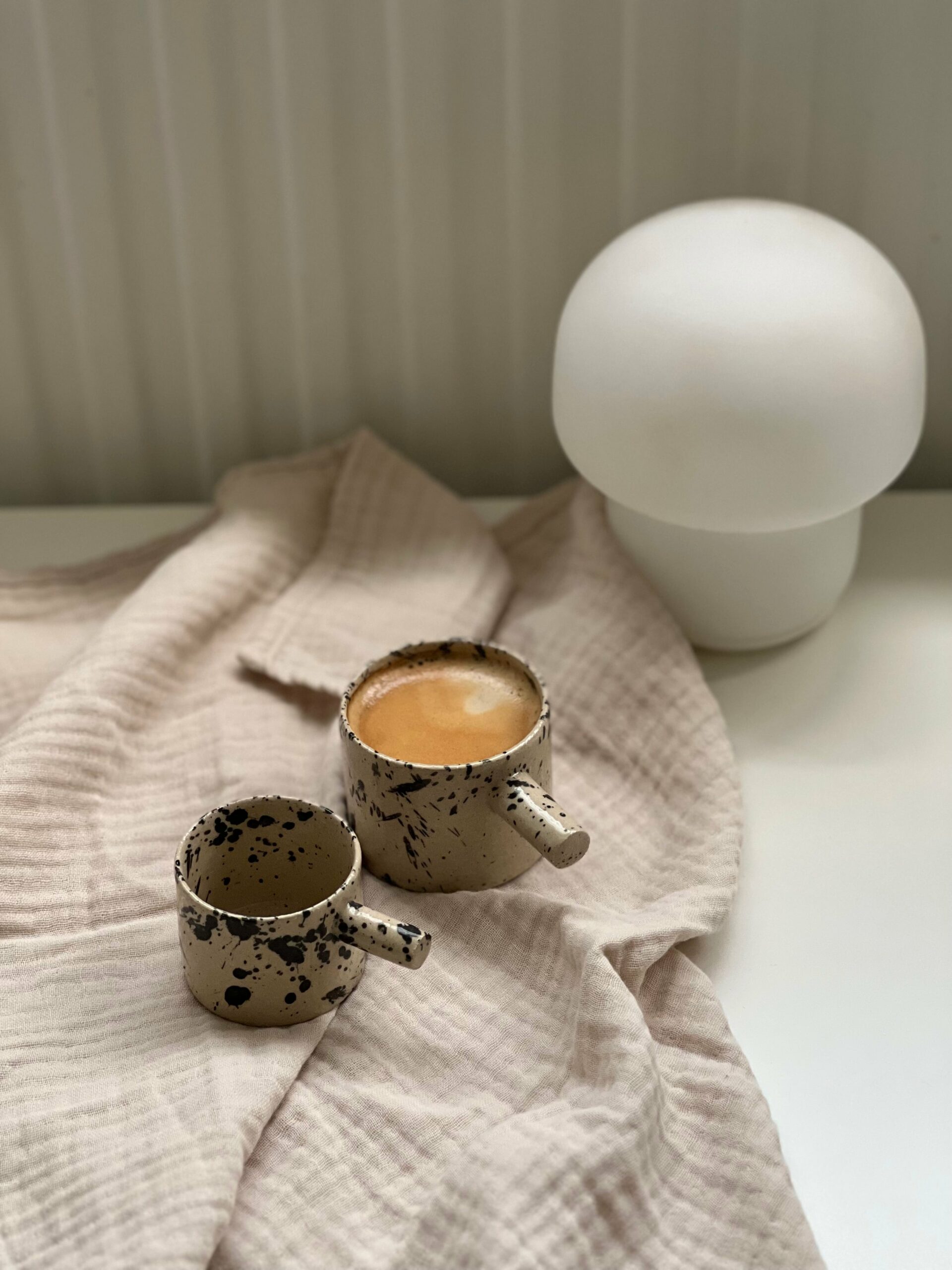 I made this 2 oz espresso cup. A white espresso mug was prepared with the slab method and fired at 1250 degrees. The espresso cup with a stick handle is perfectly sized for single-shot drinking. It is a handmade gift that coffee lovers will not give up. With its extraordinary design, it is an excellent alternative you will prefer as a home-warming gift. Each stoneware ceramic cup prepared may differ from one another in terms of colour texture and shape.