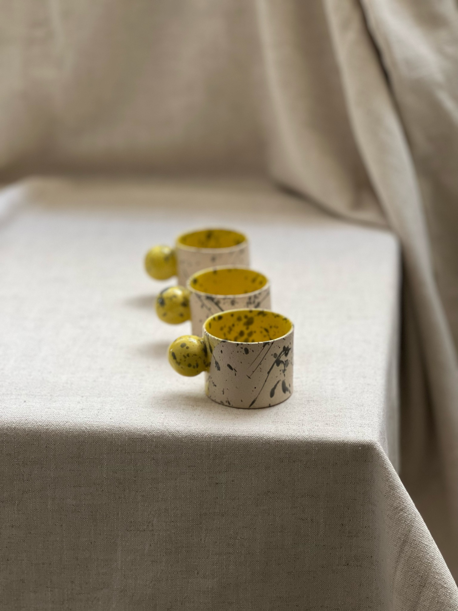 I made this 60 ml yellow espresso cup. The ceramic espresso tumbler was prepared with the slab method and fired at 1250 degrees. The hand-built coffee cup is perfectly sized for single-shot drinking. It is a handmade gift that coffee lovers will not give up. With its extraordinary design, it is a nice alternative that you will prefer as a home warming gift. Each ceramic cup prepared may differ from one another in terms of colour texture and shape.This means that the product is exclusive for you and is completely out of the hands of the artist.Cup sizes:Diameter 5 cm (1.96 inches)Height 4 cm (1.57 inches)Average capacity: 2 fl ozWe hope you like the products,(The price is valid for one product.)Each of the products has its own boxes and they are packaged.Feel happy while using it…