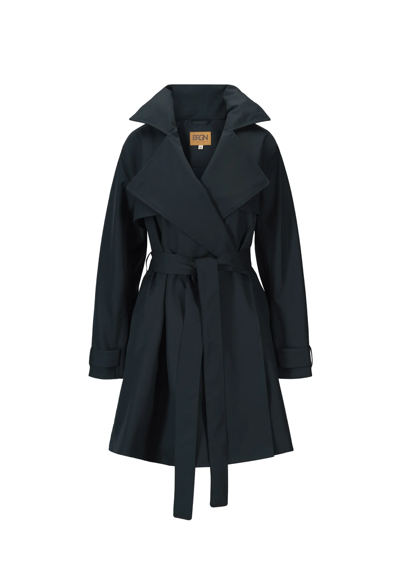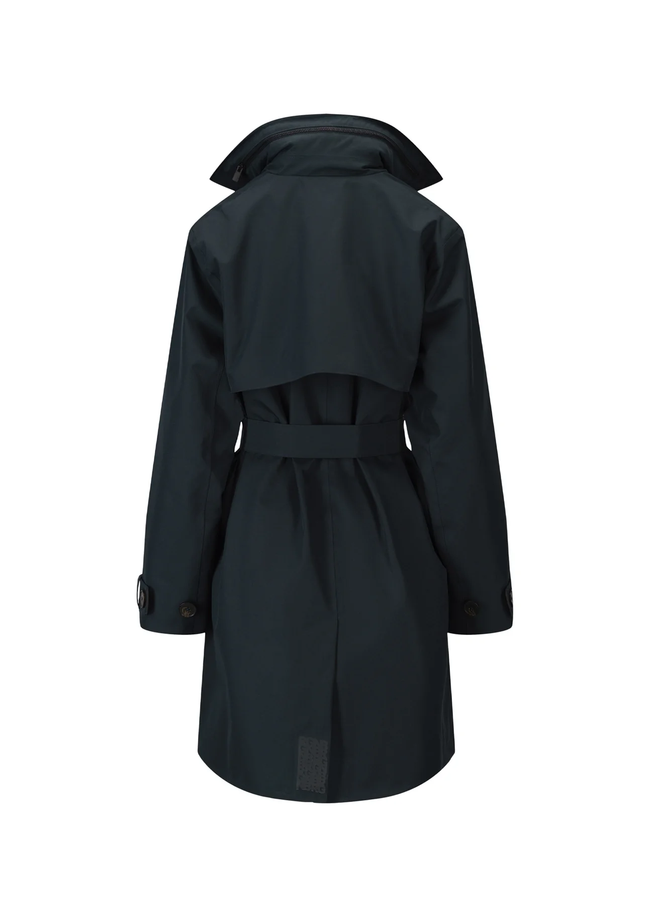 Yr’en Coat in Dark Navy is a classic and waterproof trench coat with magnetic closing. This stylish jacket comes with hood in collar, buttoned-cuff sleeves and reflective details. The coat has the same smooth fabric as the brand’s bestselling Regndråpe Trench.