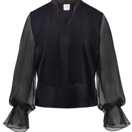 Black Silk Blouse With Sheer Sleeves